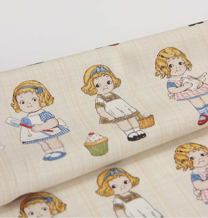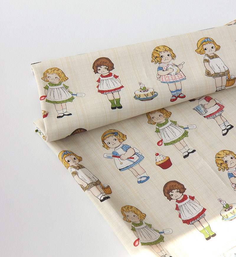 ヴィンテージ ペーパードール ベーカリーガールズ ファブリック
