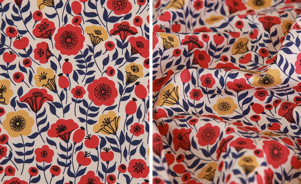 この生地はDTP(デジタルテキスタイルプリント)方式で印刷されています