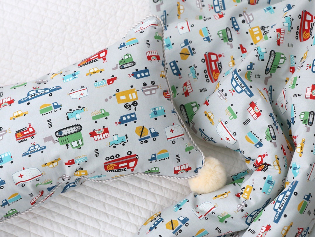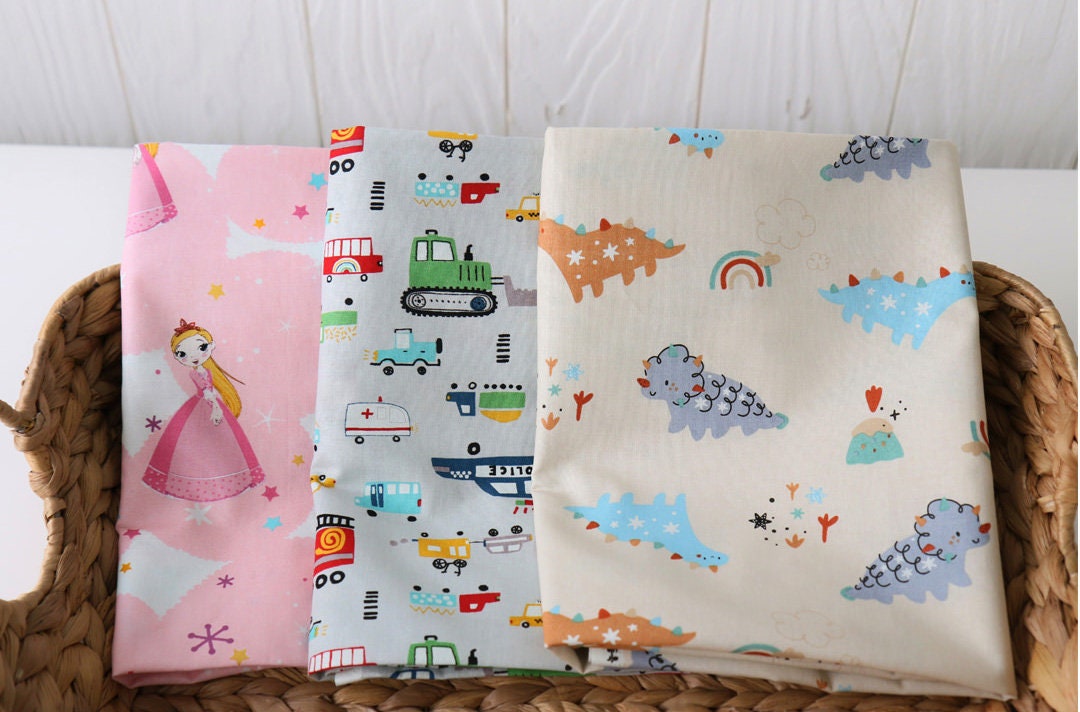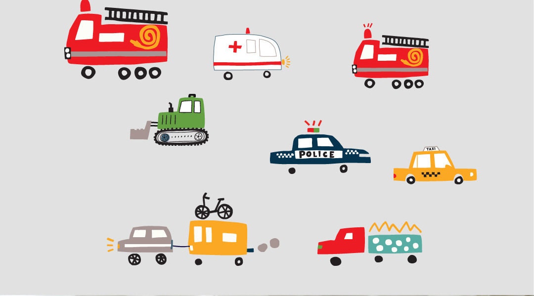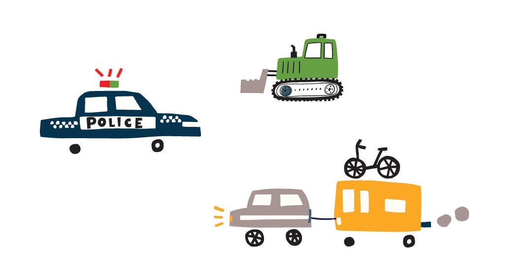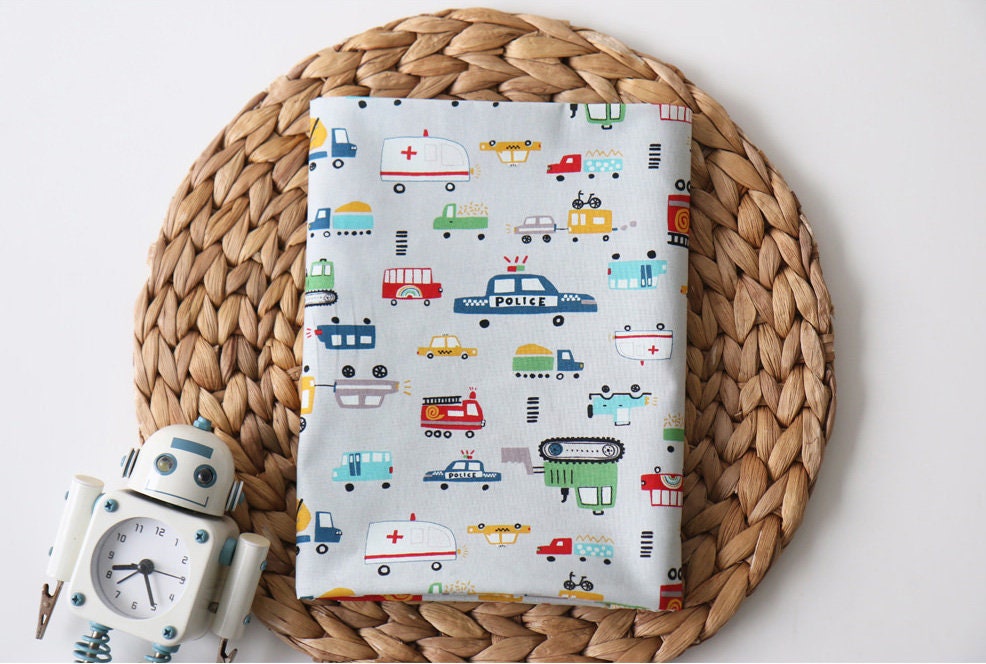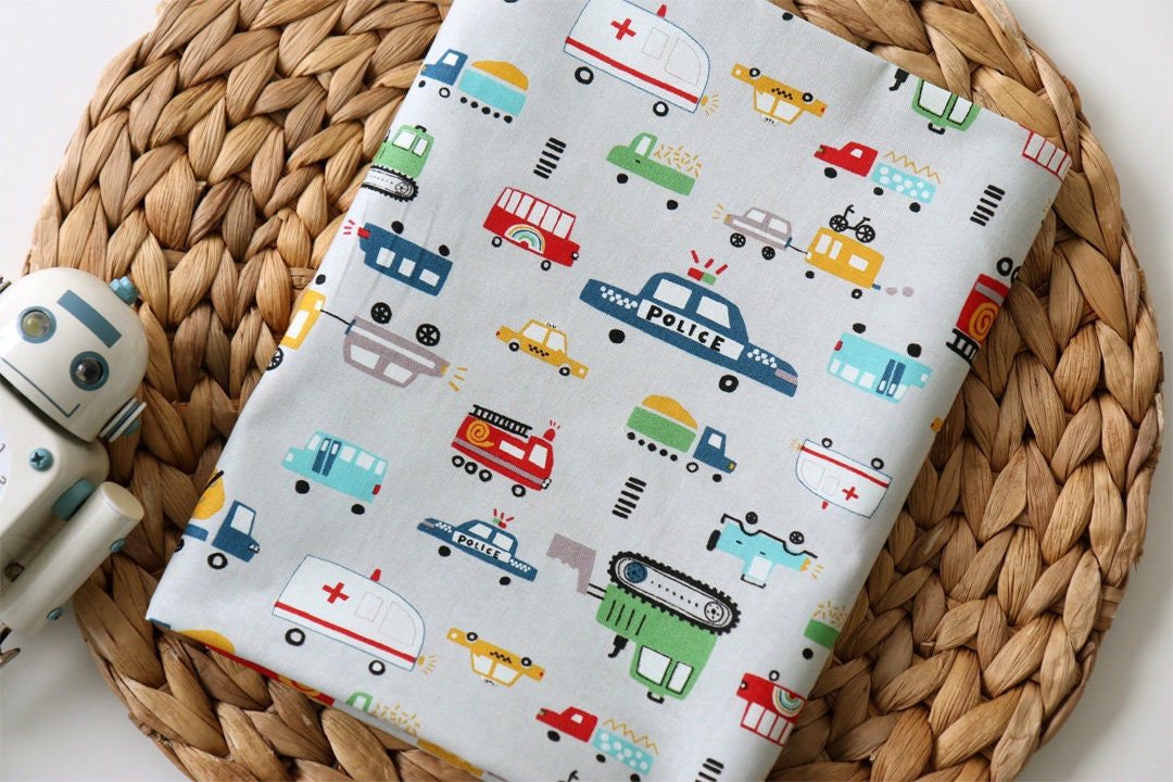 かわいいパトカー、消防車、トラクター、救急車の柄生地 - 韓国の生地