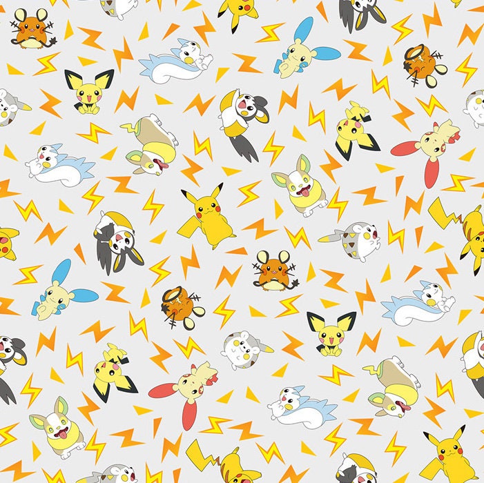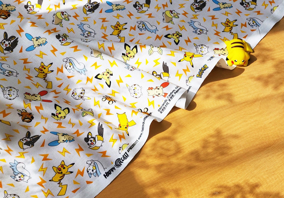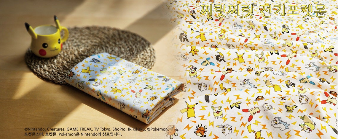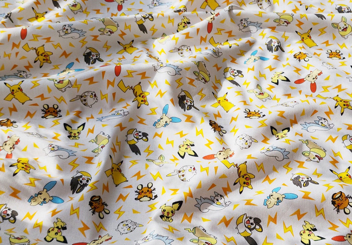 ポケットモンスター、ピカチュウと電気タイプのポケモンキャラクター生地、韓国製
