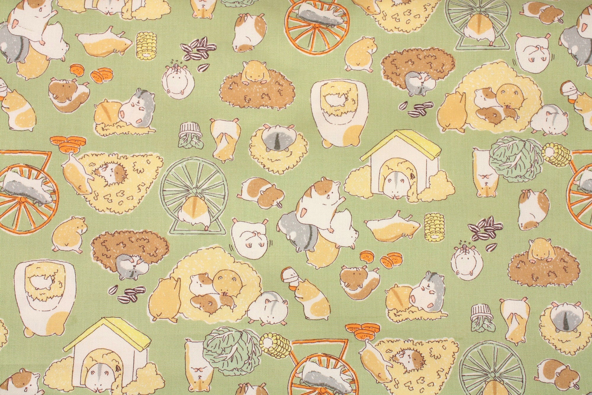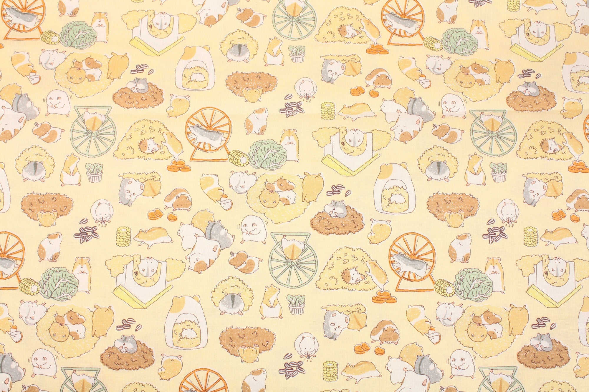 ハムスターライフ柄オックスフォード生地 - 日本の生地