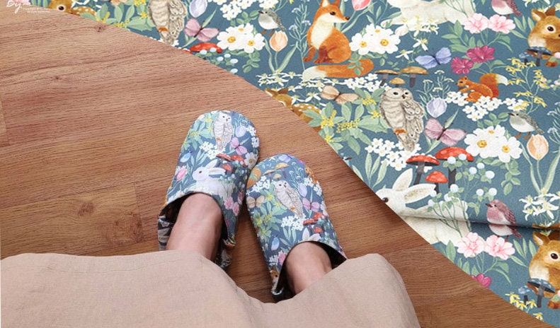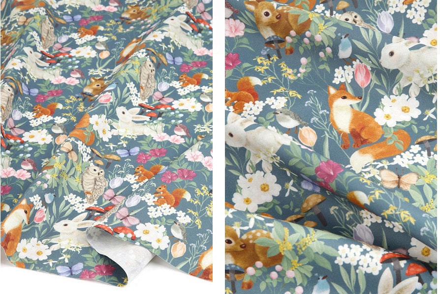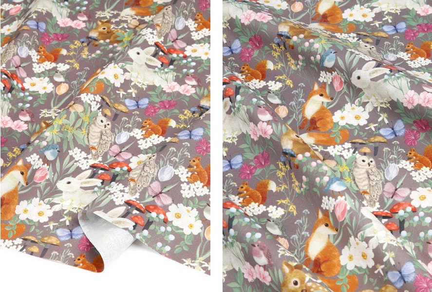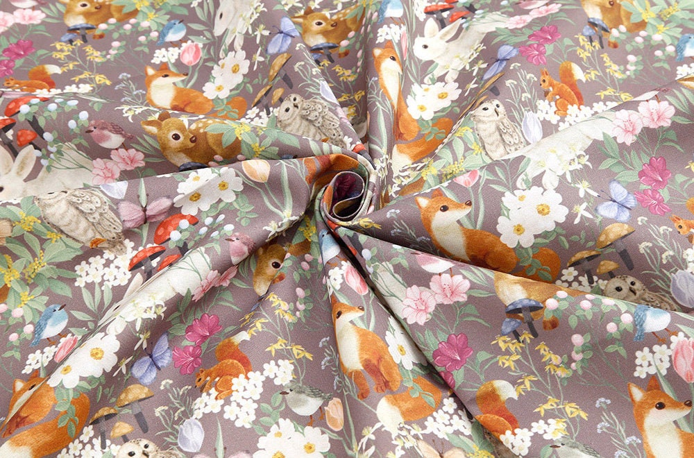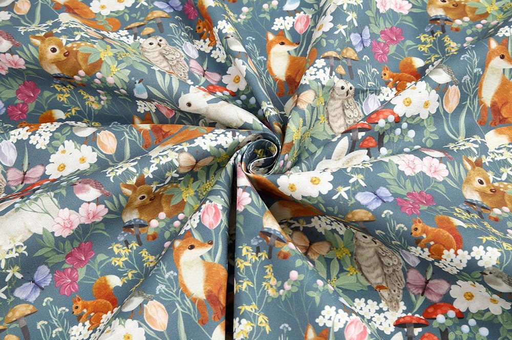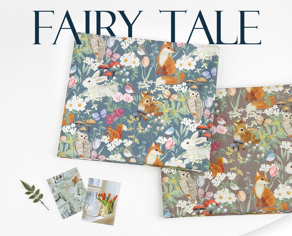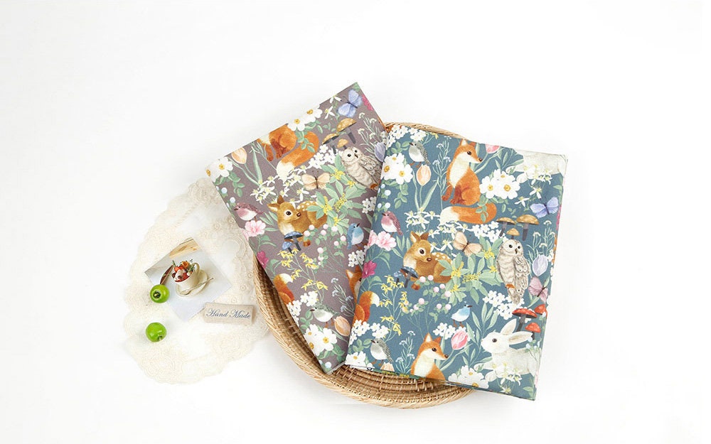 おとぎ話の鹿、ウサギ、キツネ、フクロウの動物柄 OEKO-TEX® - 韓国生地