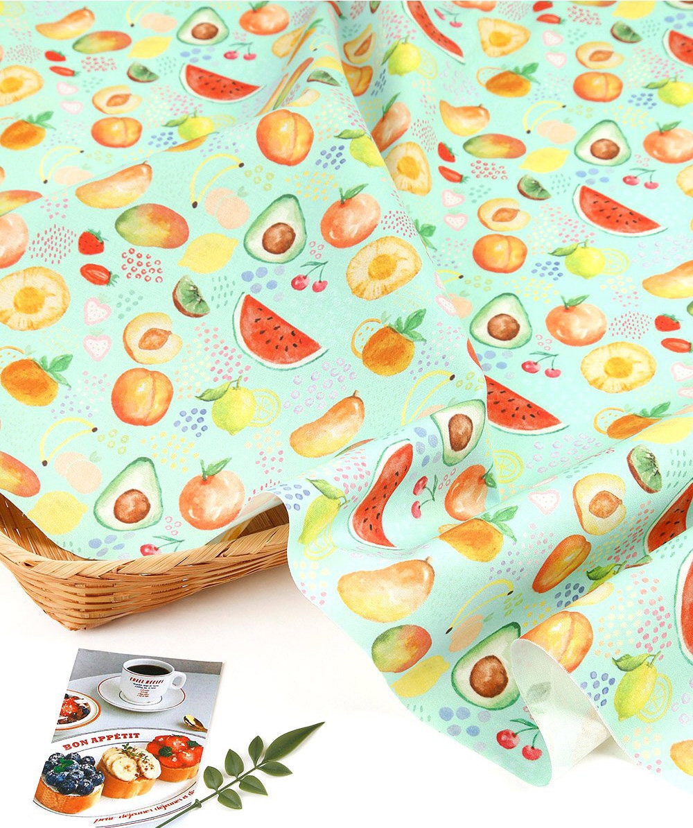 アップル キウイ アボカド チェリー スイカ フルーツ柄 OEKO-TEX® - 韓国生地