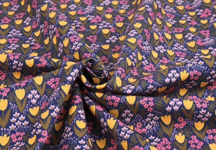 黄色いチューリップの花園 OEKO-TEX 柄生地 - 韓国生地