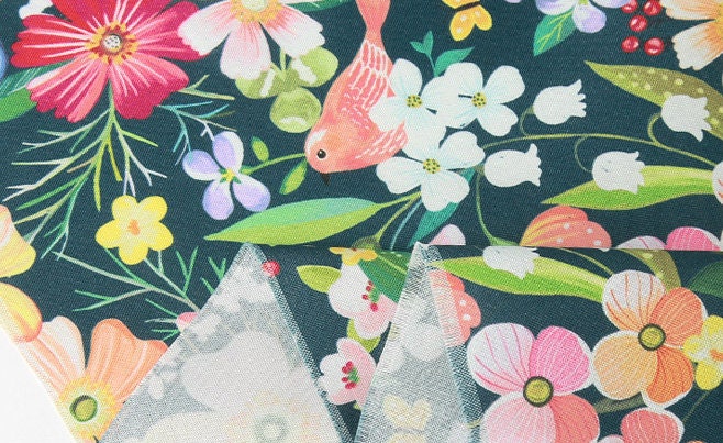 この生地はDTP(デジタルテキスタイルプリント)方式で印刷されています