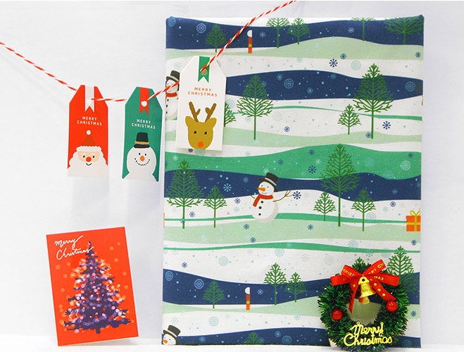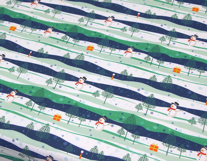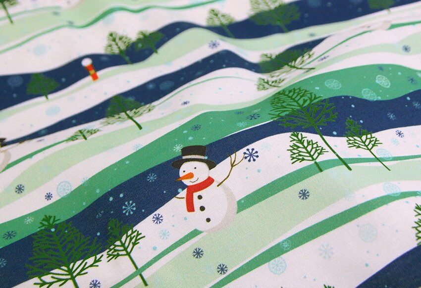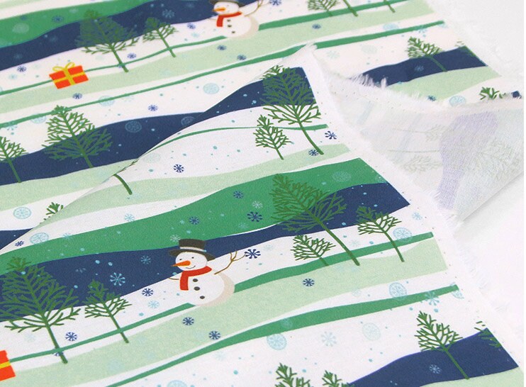 雪の森の雪だるま柄の生地 - 韓国の生地
