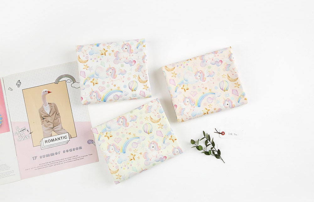 レインボーユニコーン柄生地 - 韓国生地