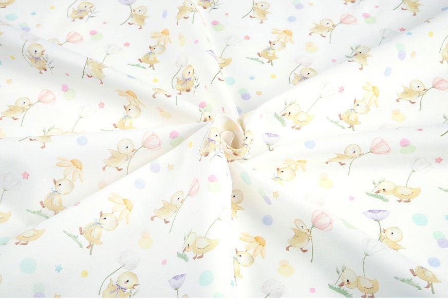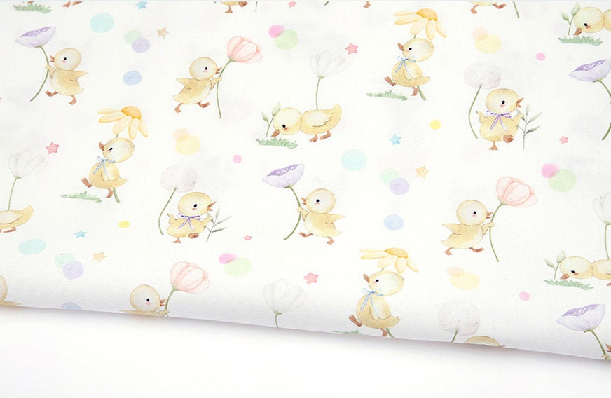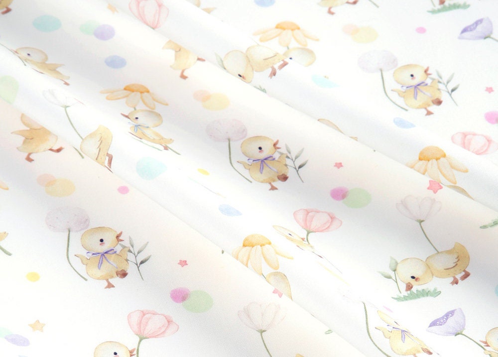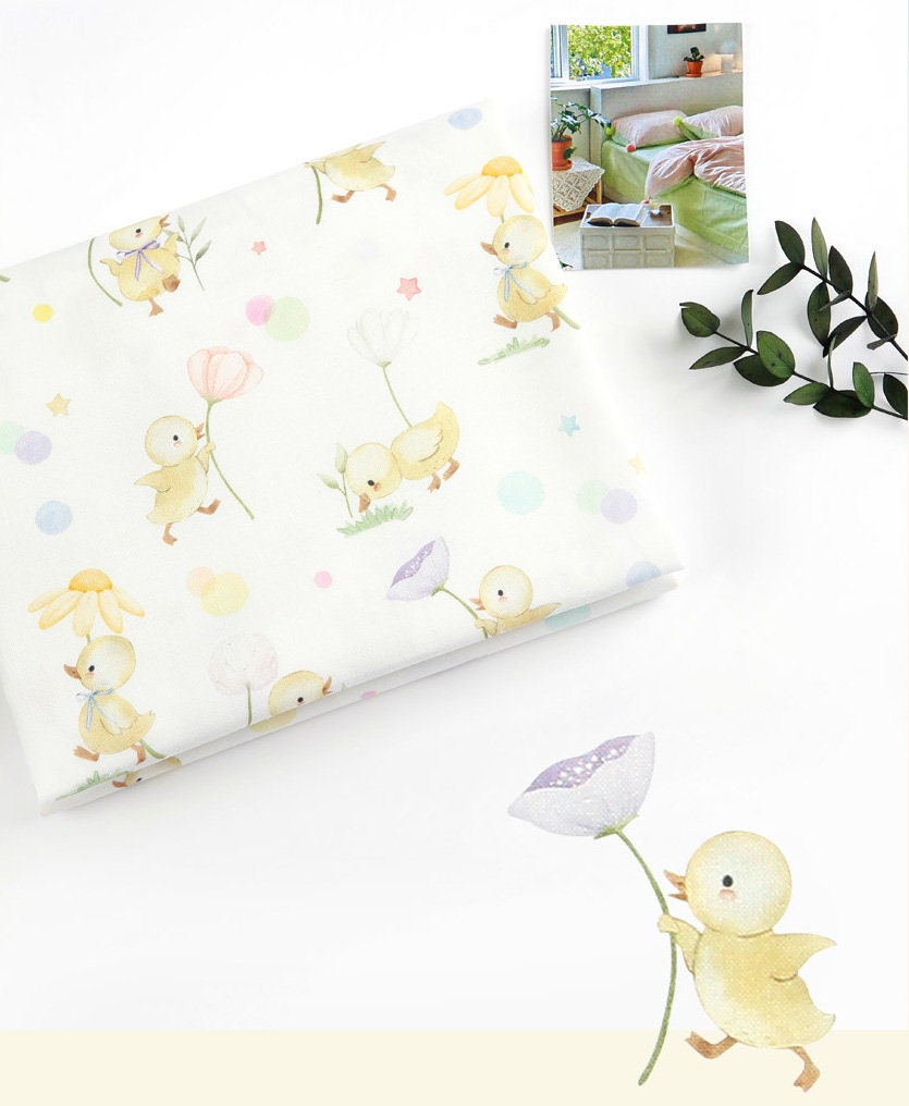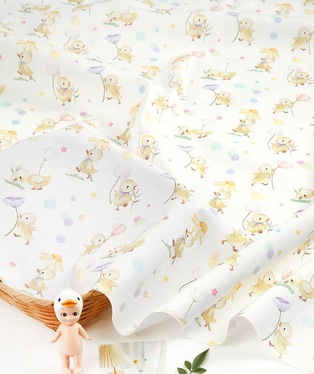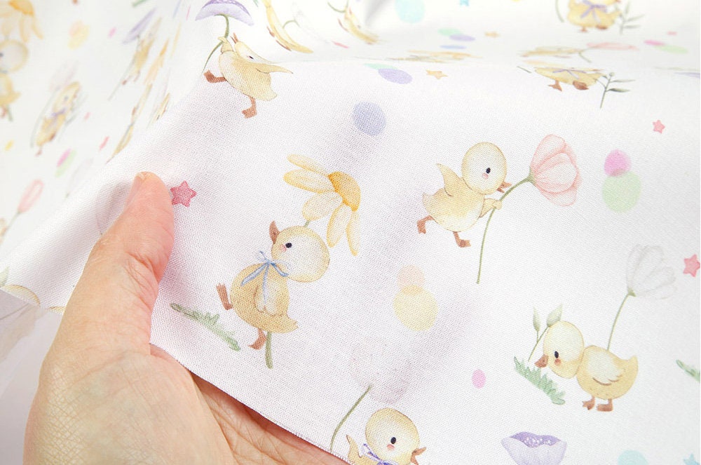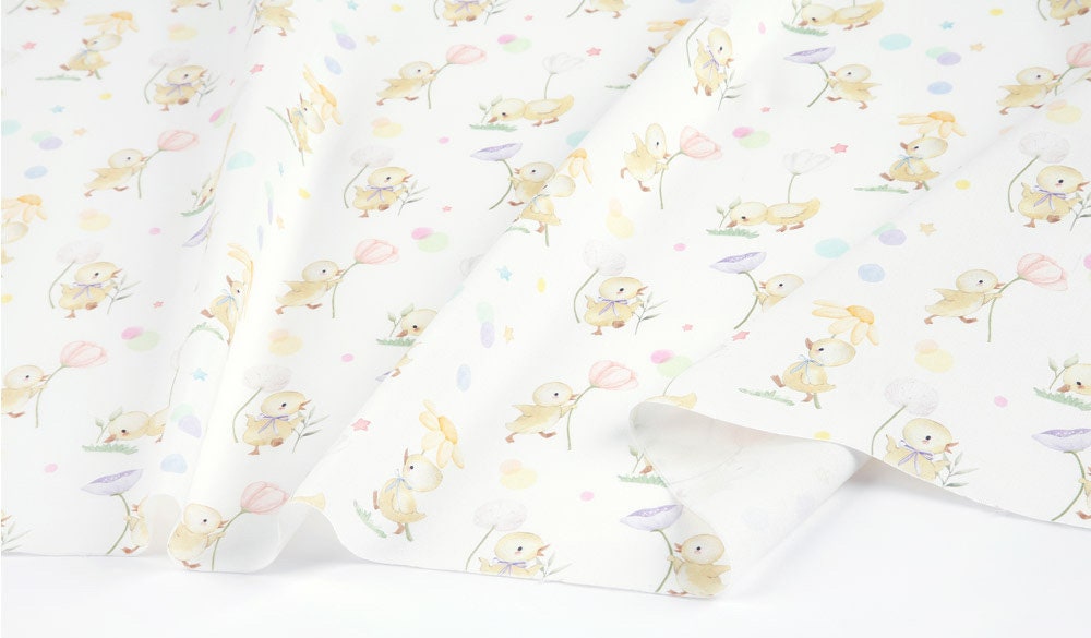 小さな黄色いひよこの花柄生地 - 韓国の生地