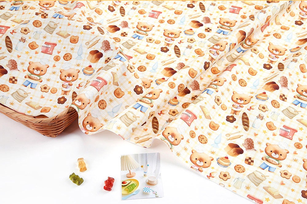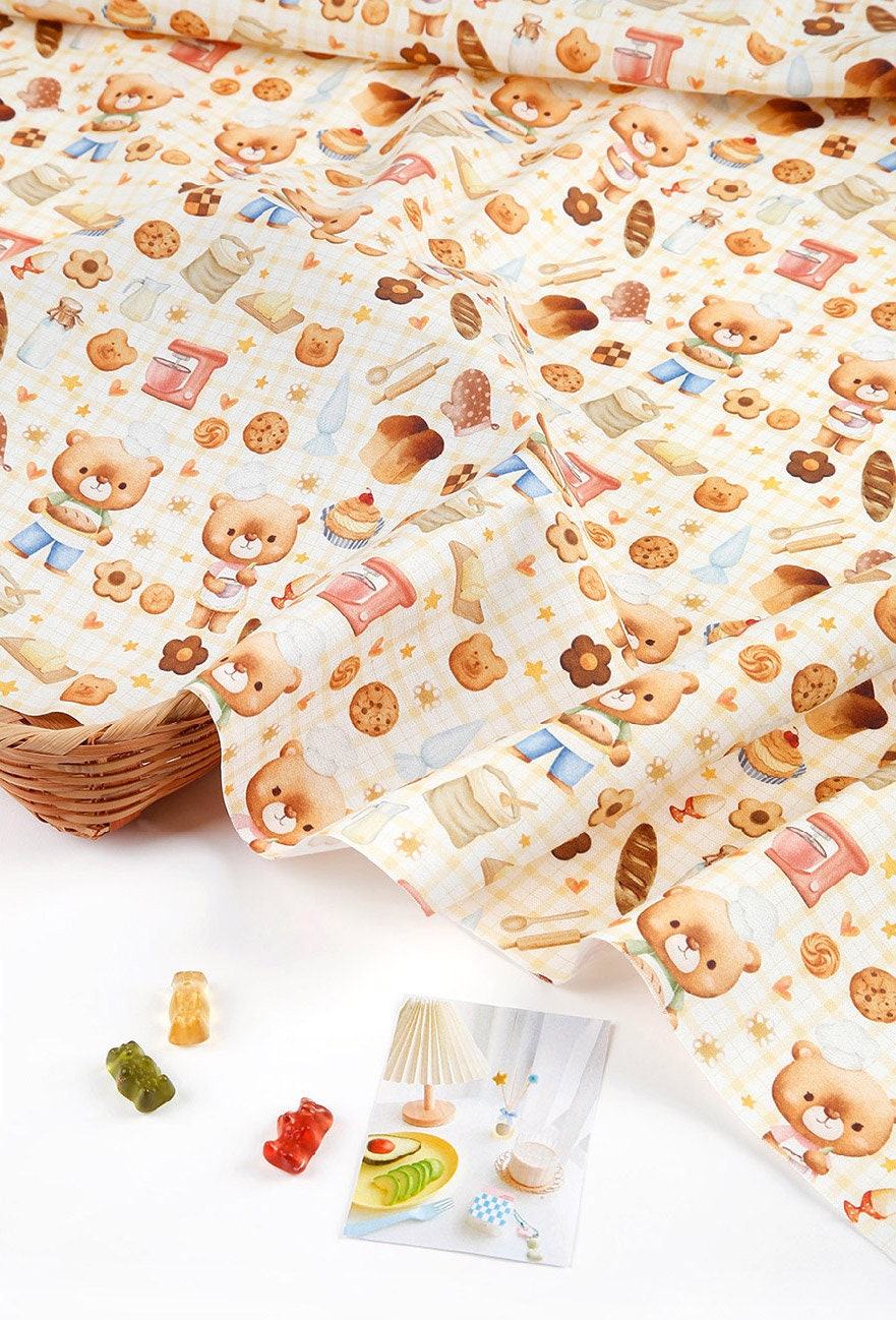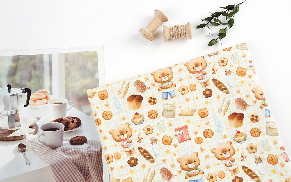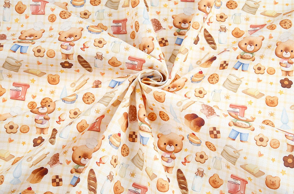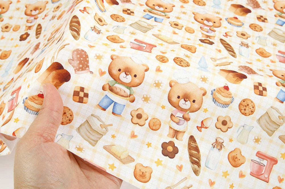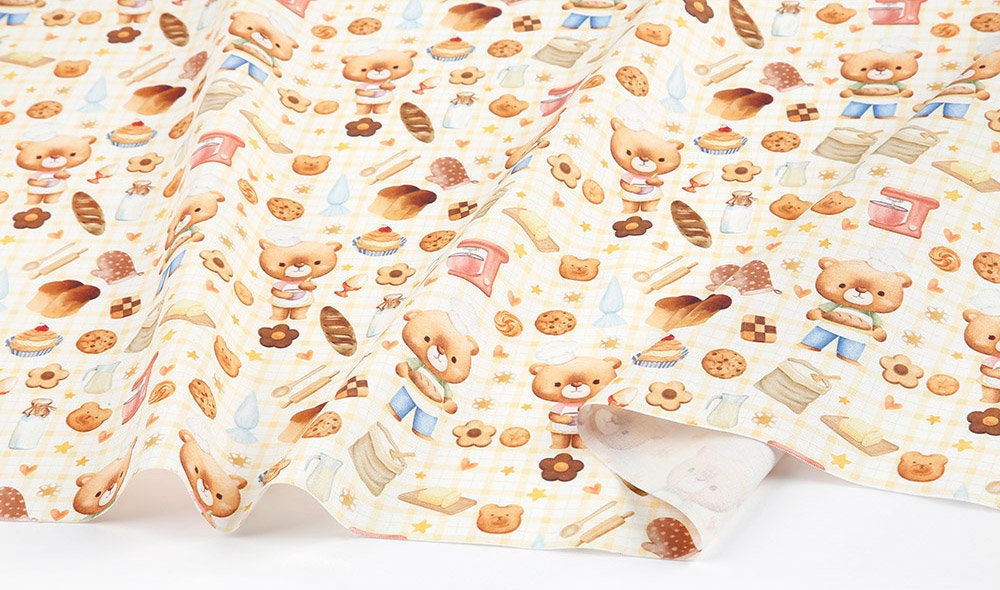 ベーカリー ベア クッキー パティシエ ベア 柄生地、かわいい、裁縫、キルト - 韓国生地
