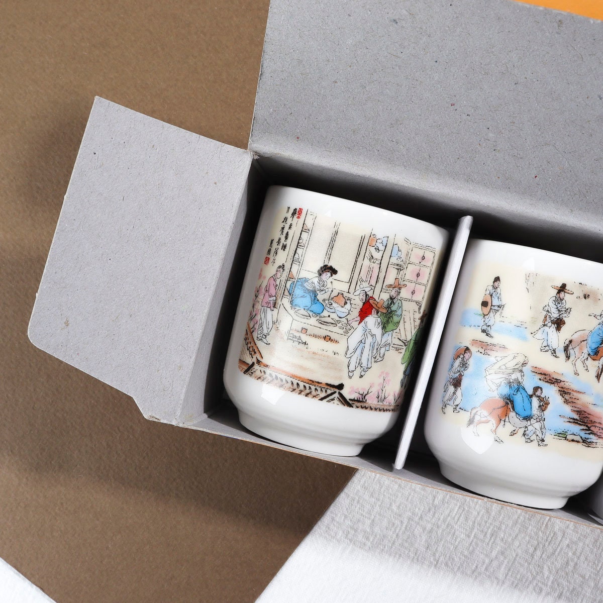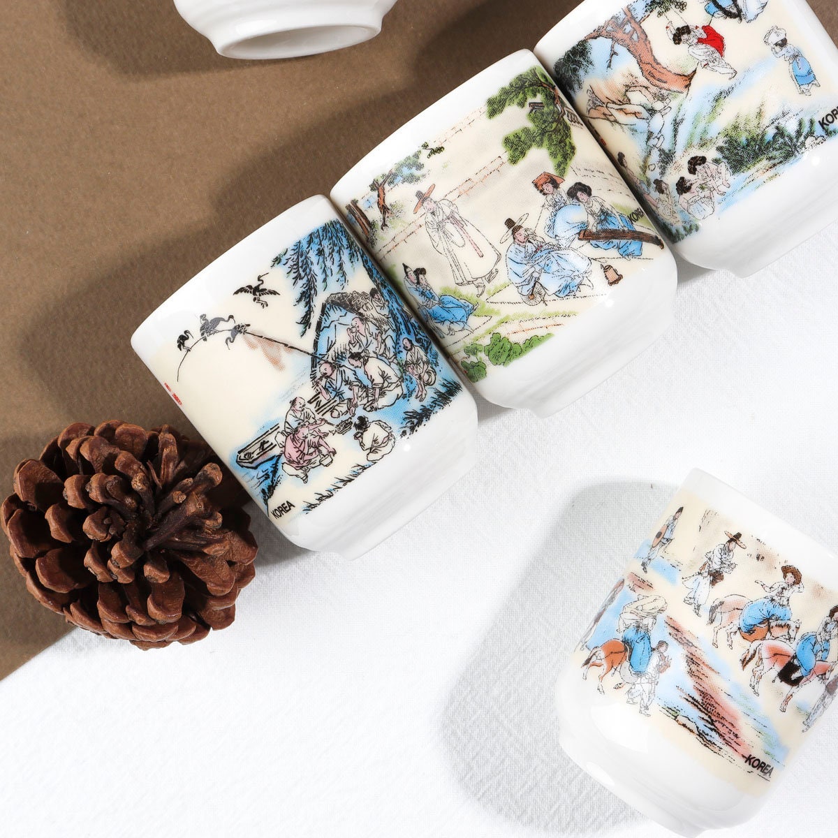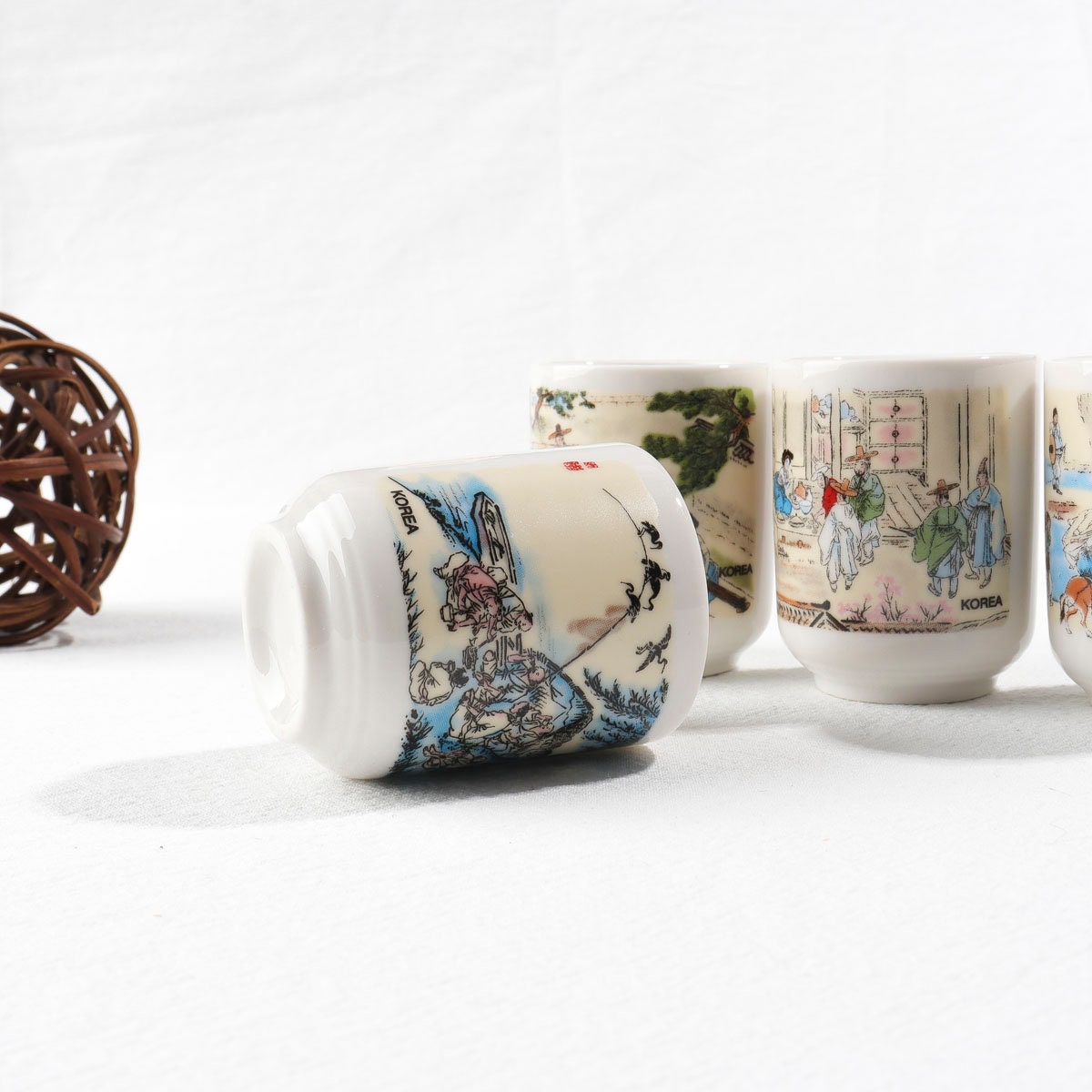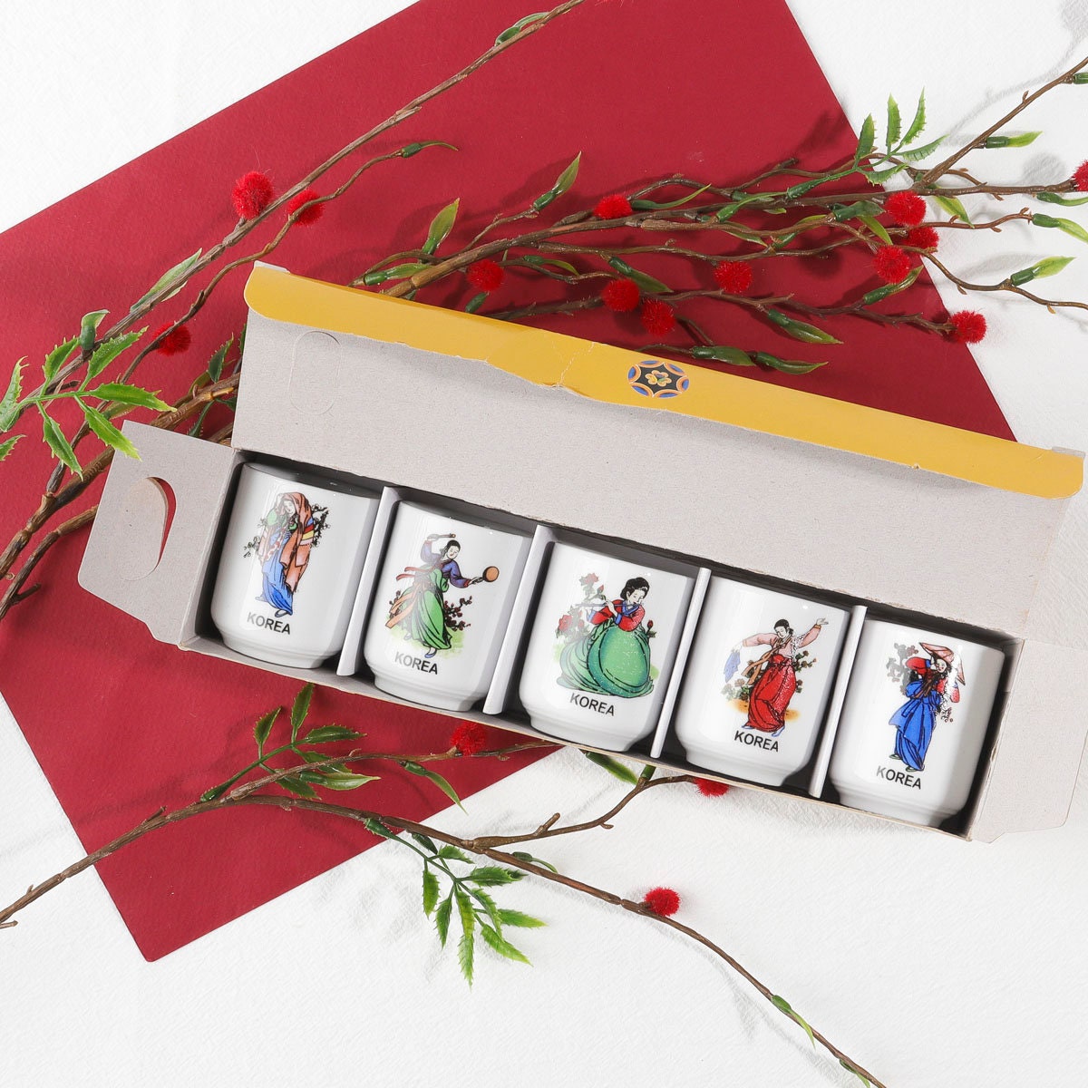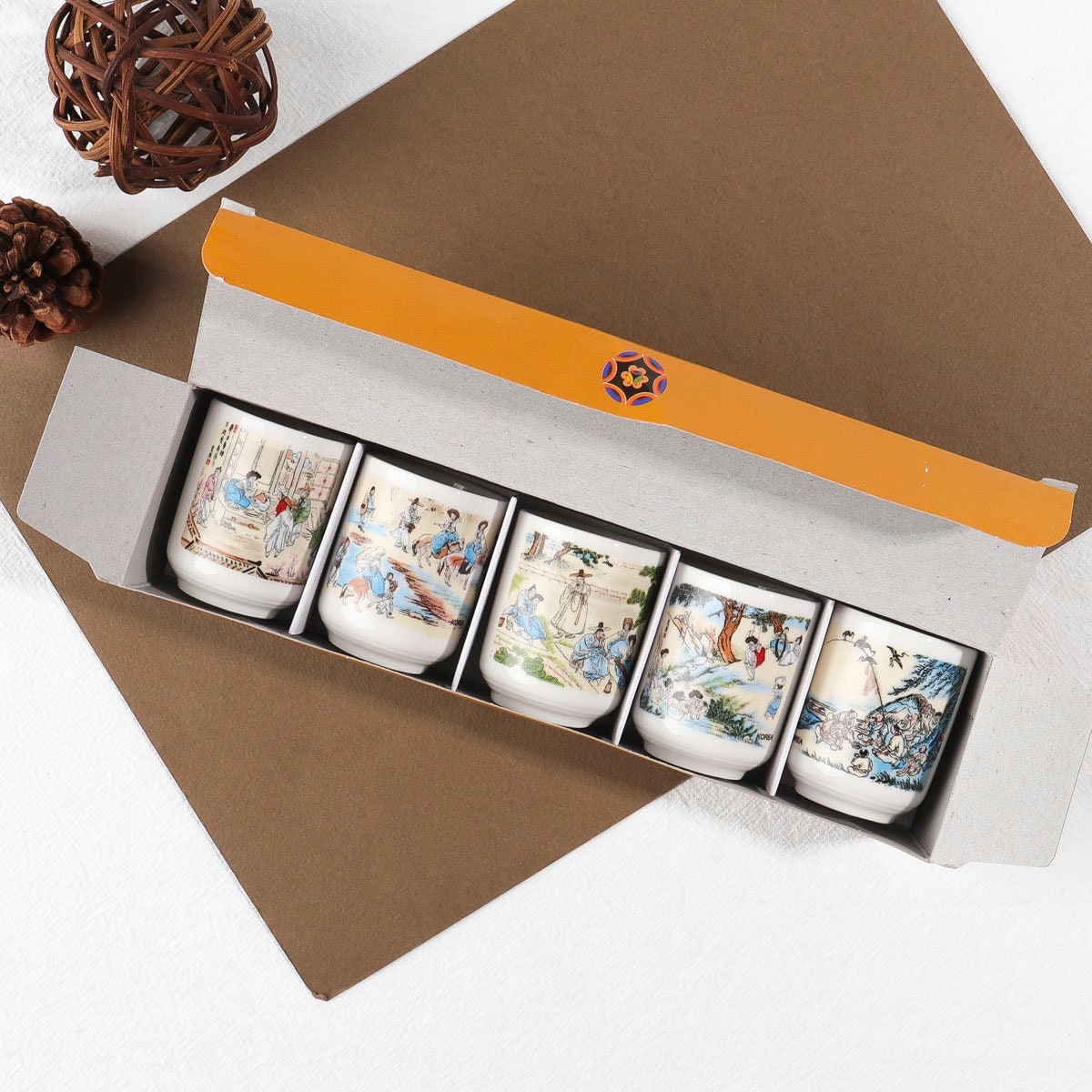 5個セット:韓国の伝統芸術絵画模様のスジュショットグラス