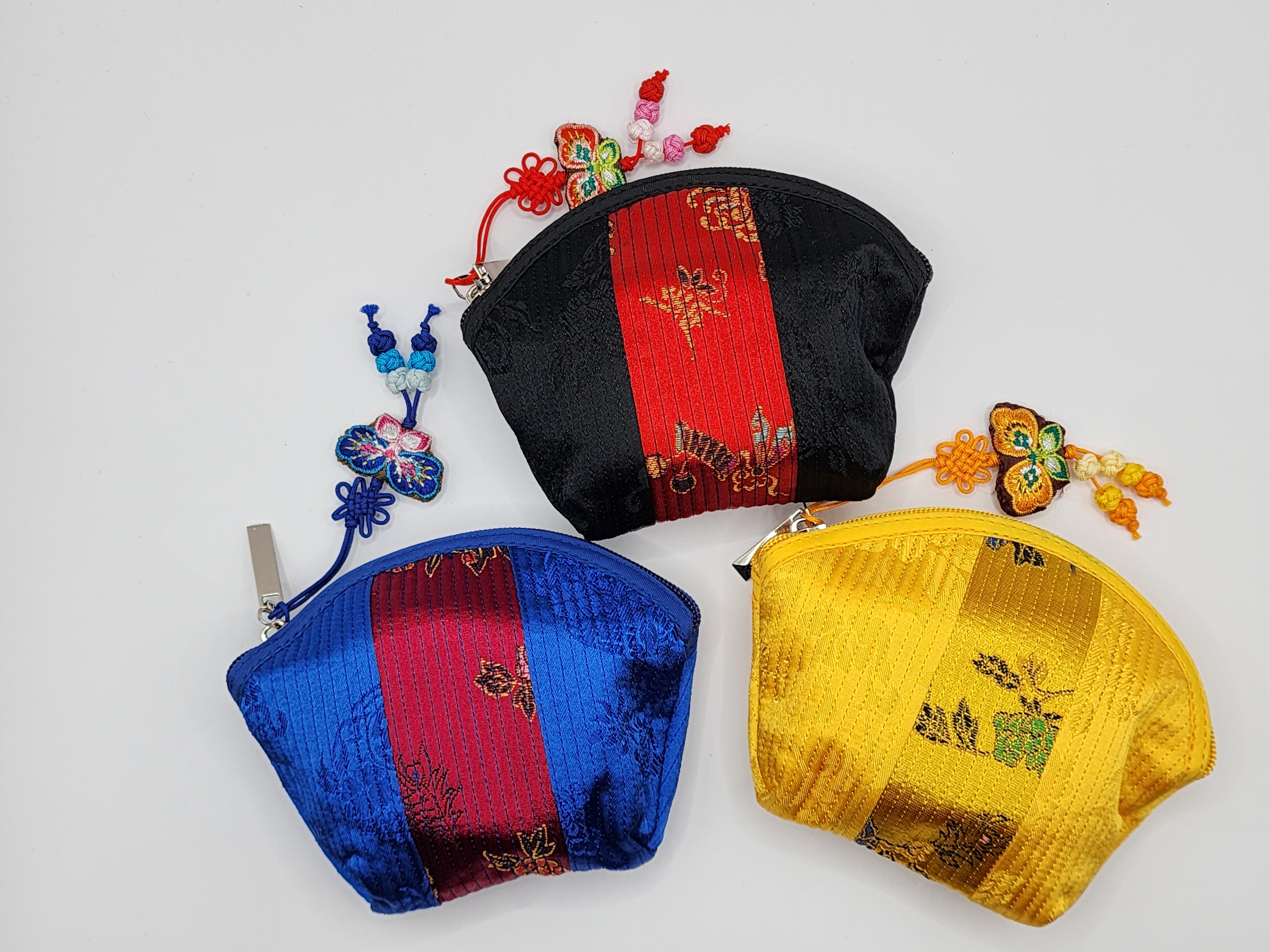 韓国の伝統模様が入った花刺繍の小銭入れミニポケット