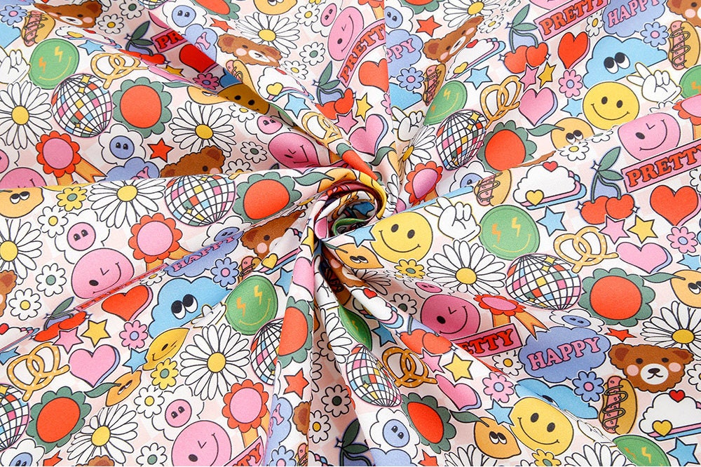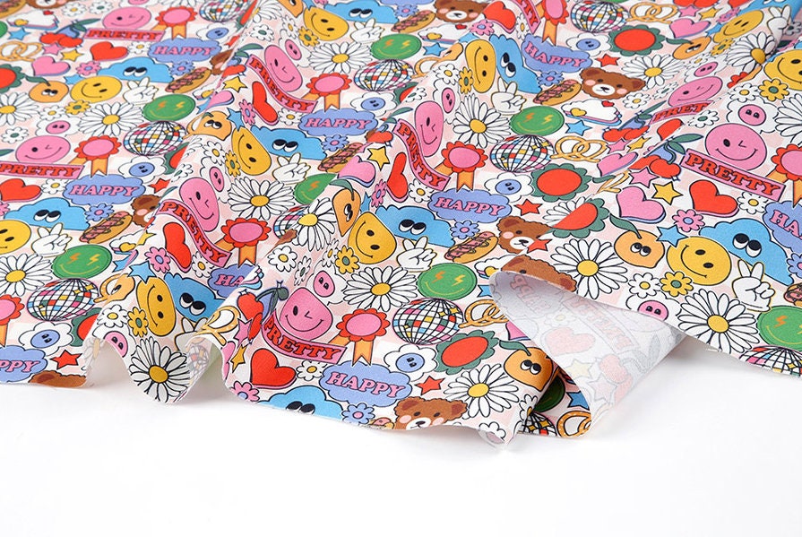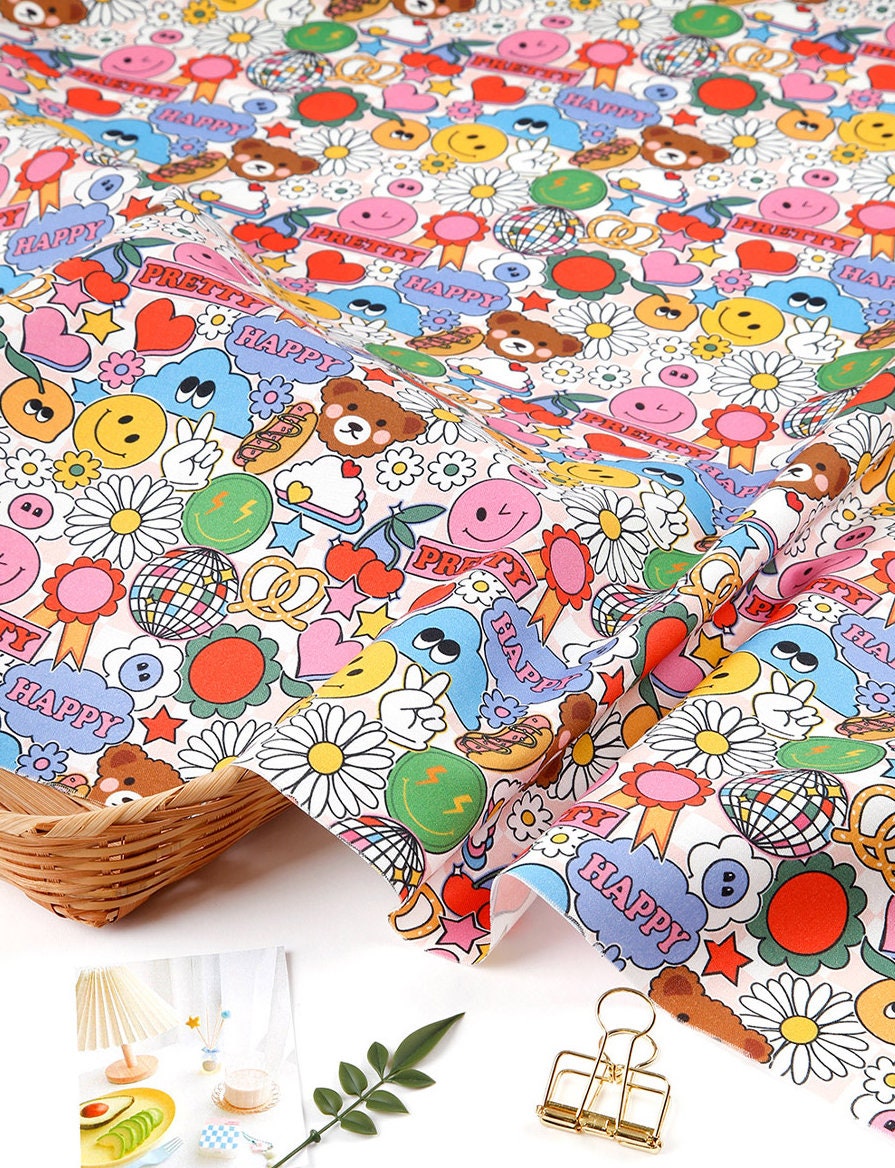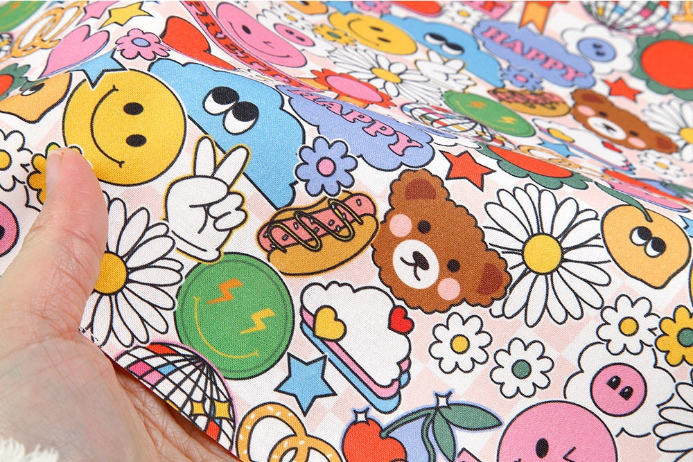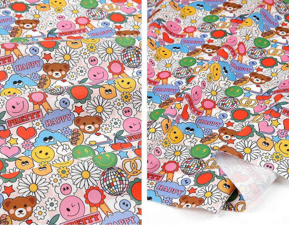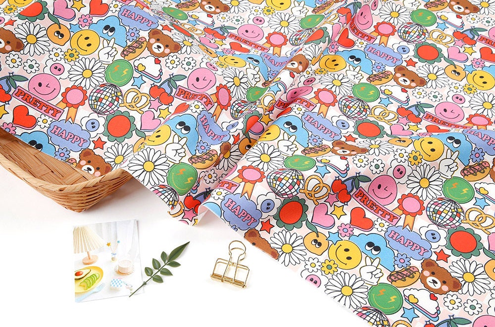 ポップでキュートで可愛いハッピーなパステルカラー柄生地、生地 - 韓国生地