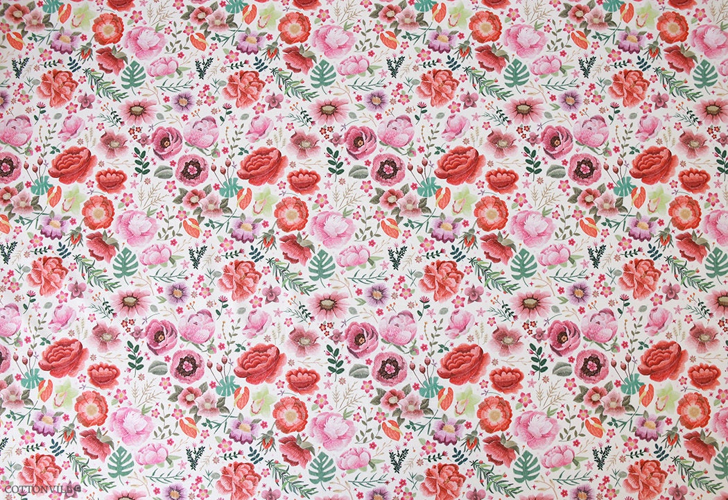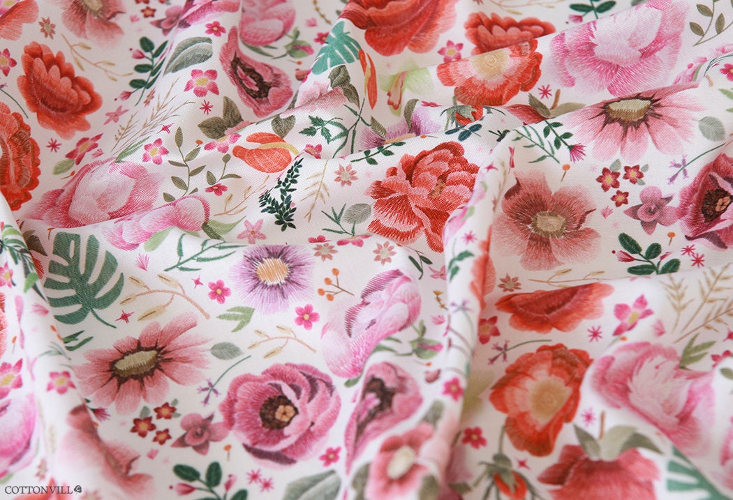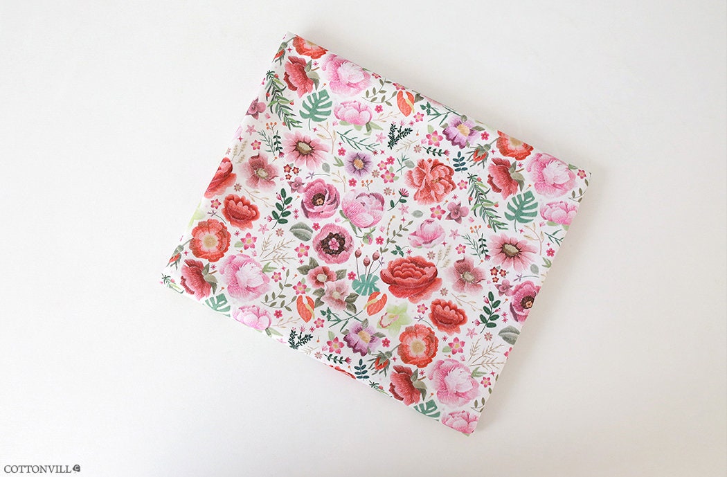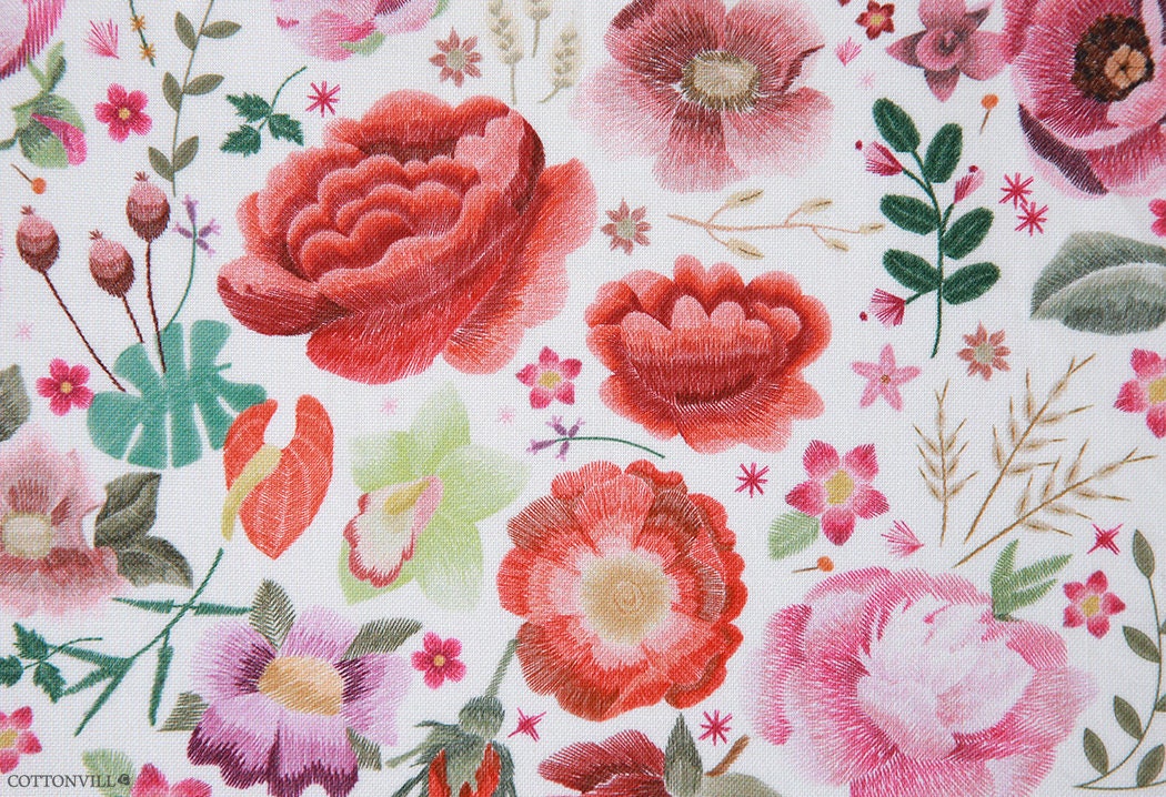 牡丹刺繍花園柄生地縫製、キルト - 韓国生地