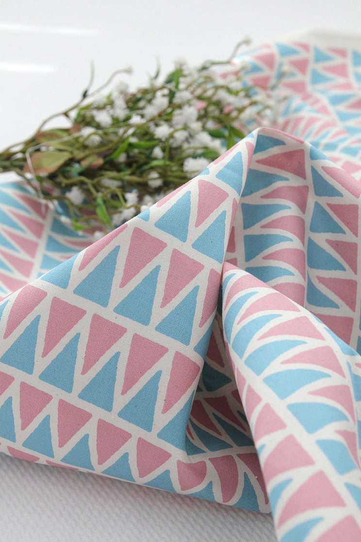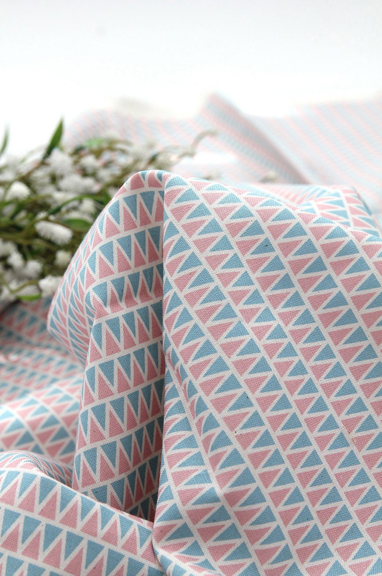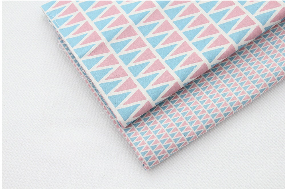 パステルブルーピンクの三角形の模様 - 韓国の生地