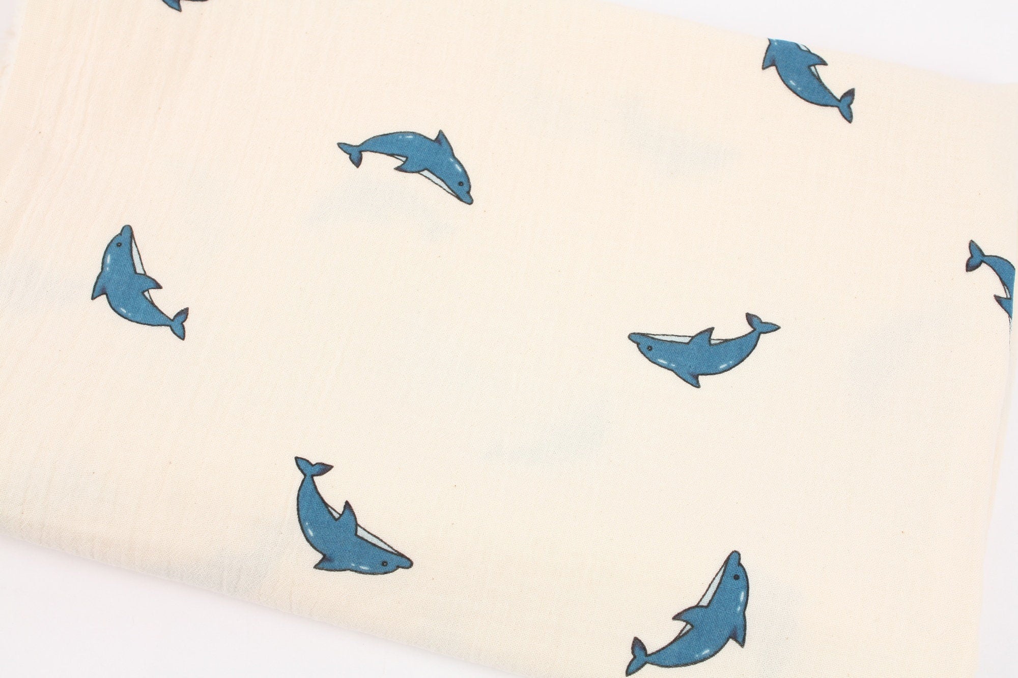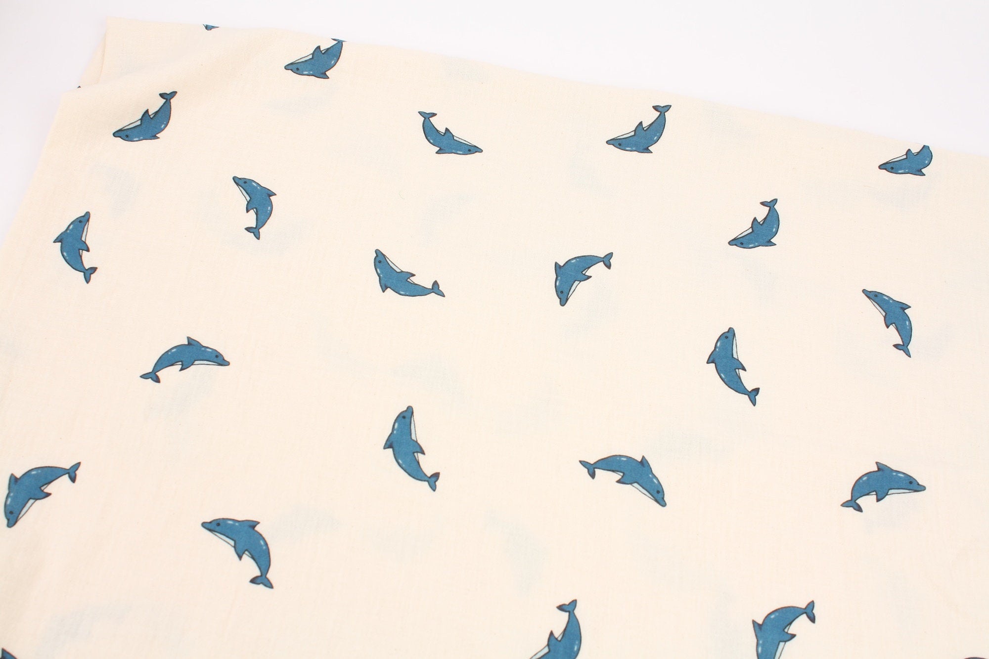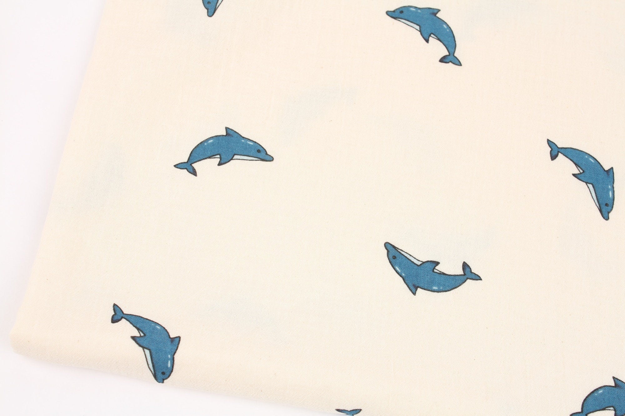 動物イルカ柄ダブルガーゼ生地、かわいい、子供用、裁縫、キルト - 韓国生地