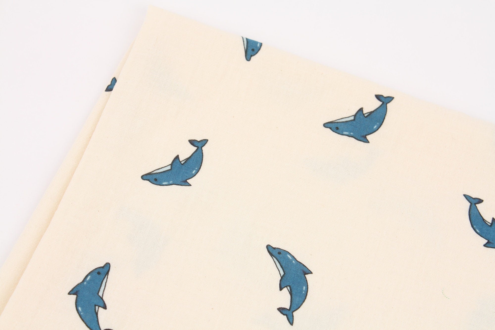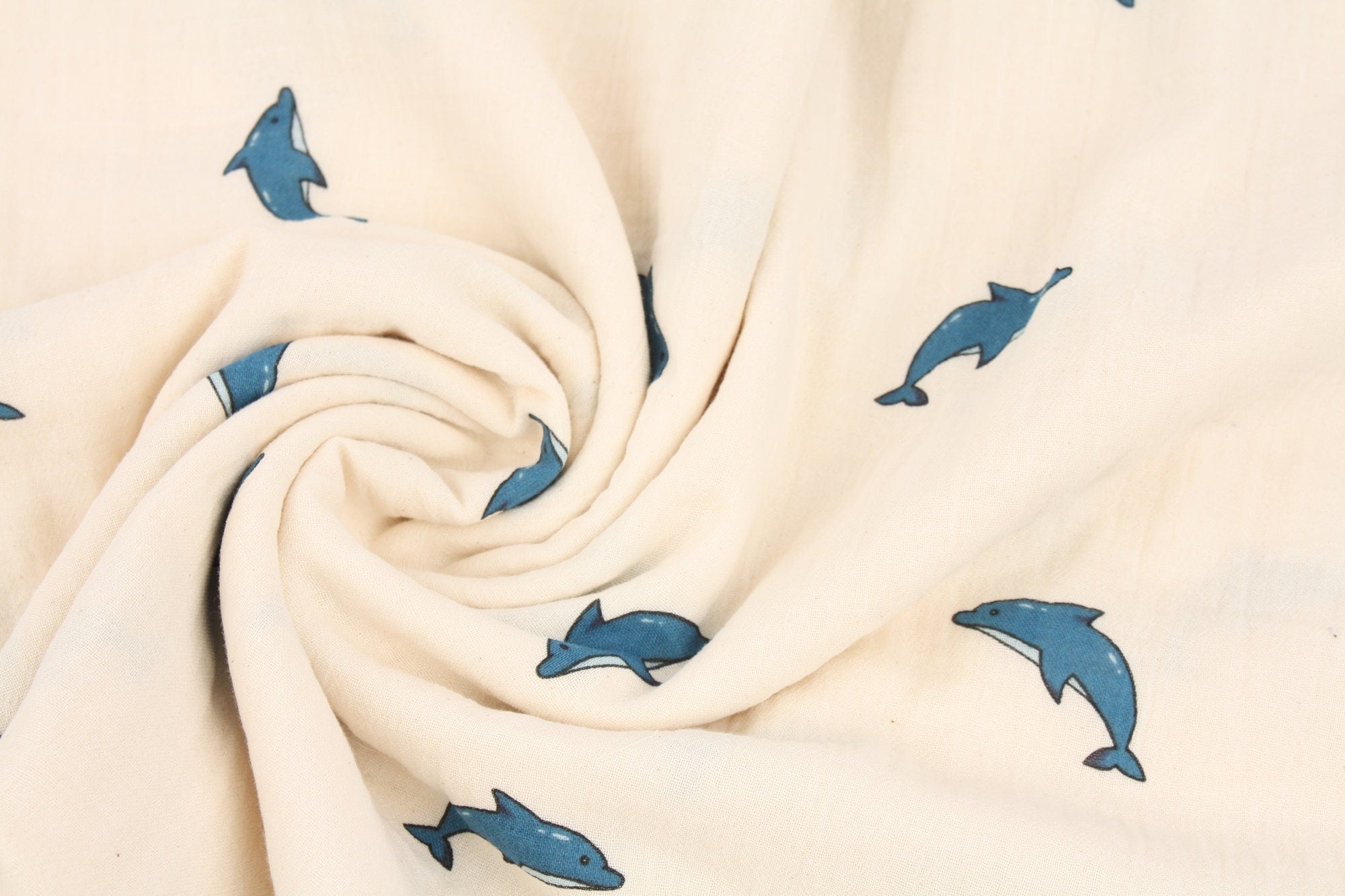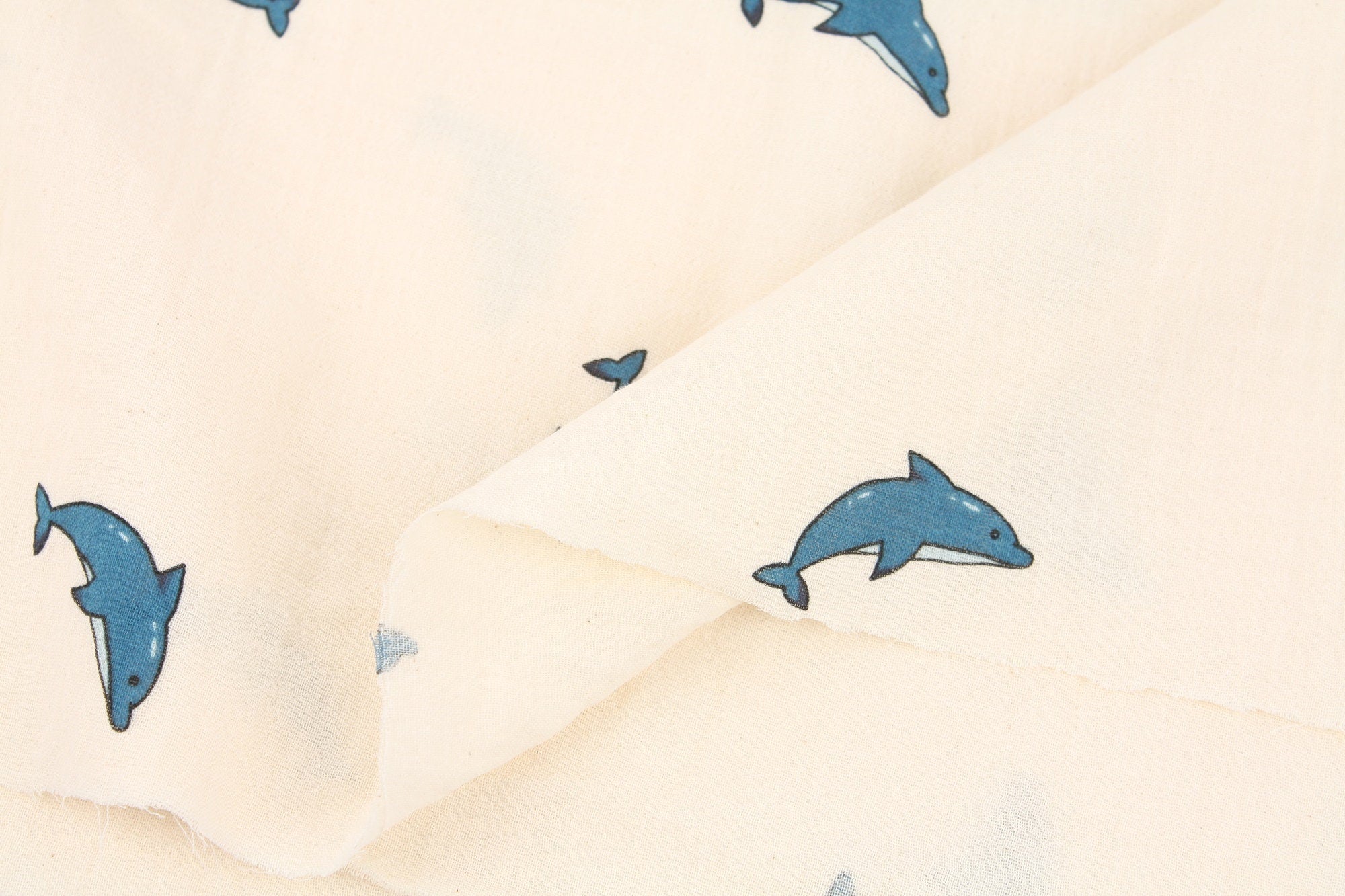 動物イルカ柄ダブルガーゼ生地、かわいい、子供用、裁縫、キルト - 韓国生地
