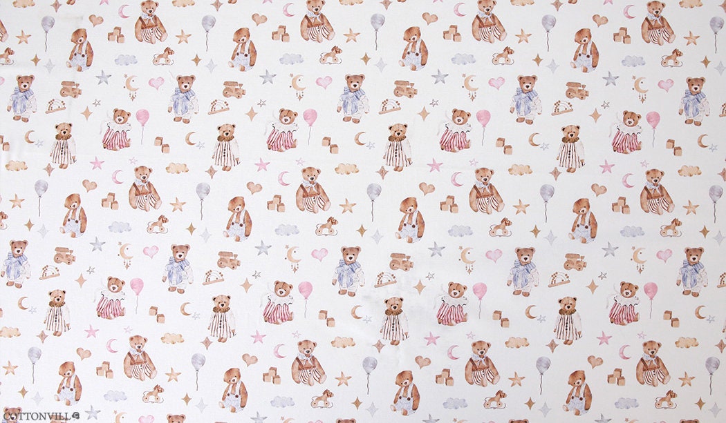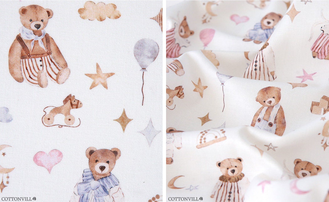 パジャマ テディベア柄 30 年代 GOTS オーガニック テキスタイル ファブリック - 韓国のファブリック
