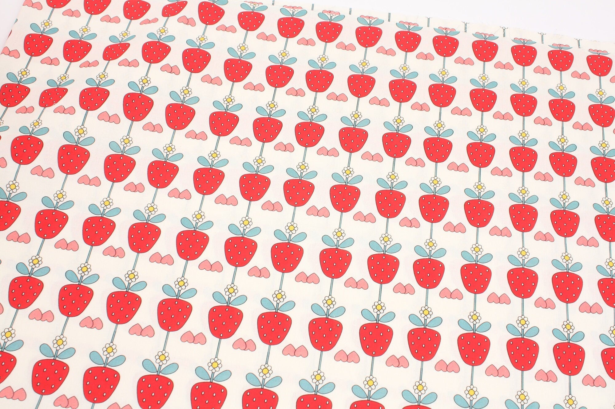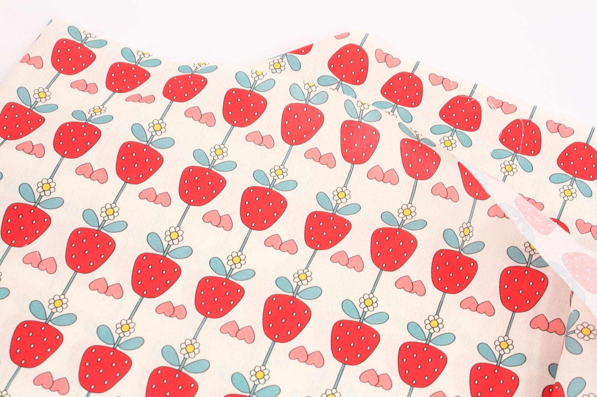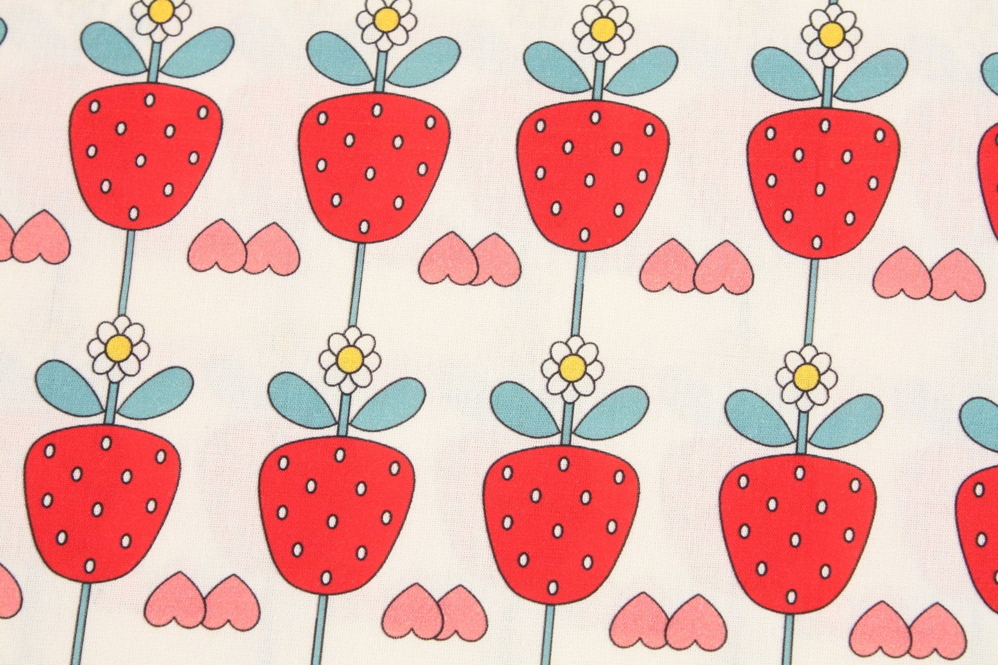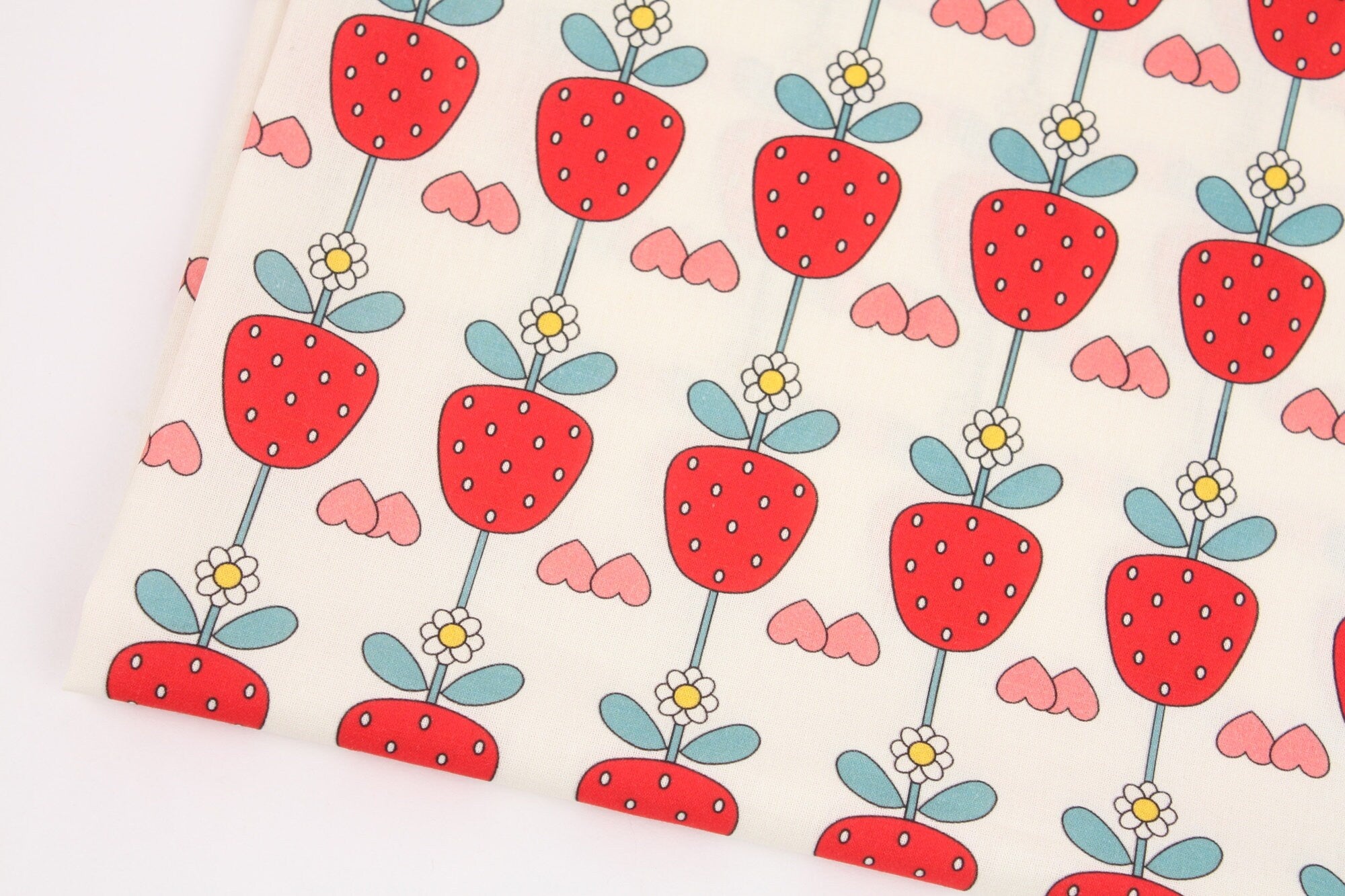 イチゴとイチゴの花柄の生地、かわいい、子供用、裁縫、キルト - 韓国の生地