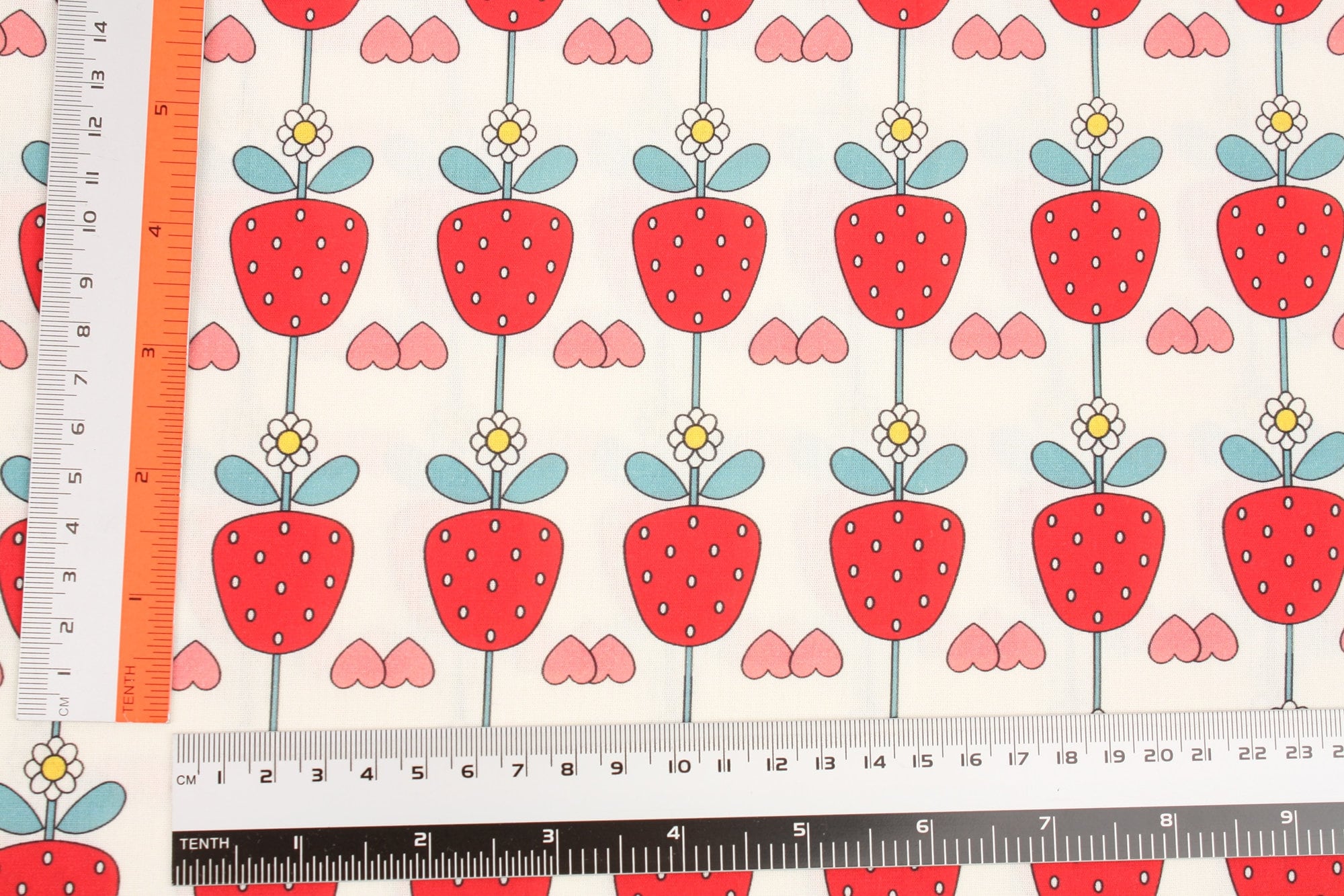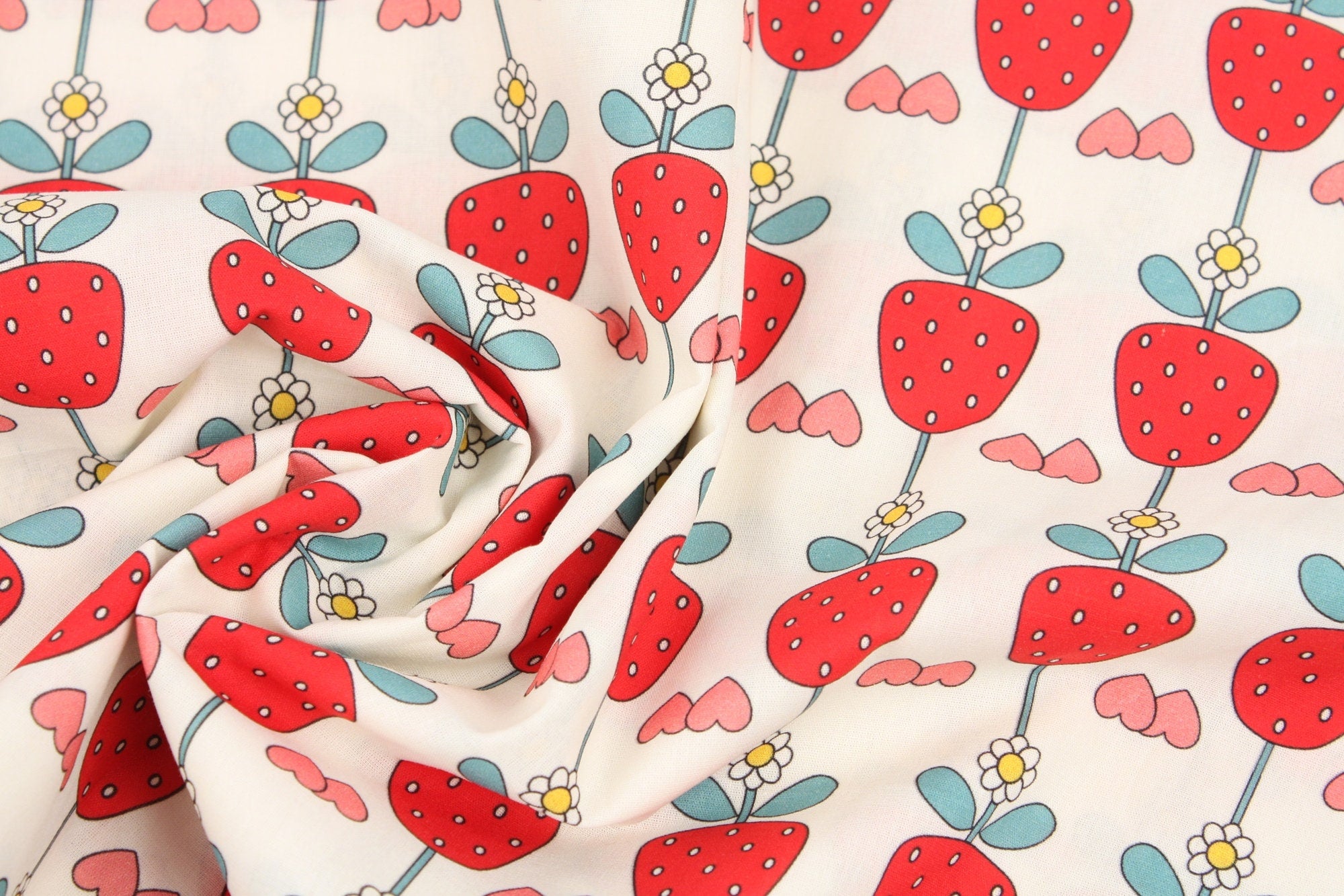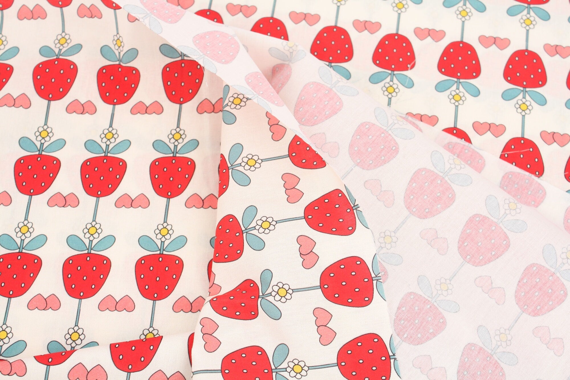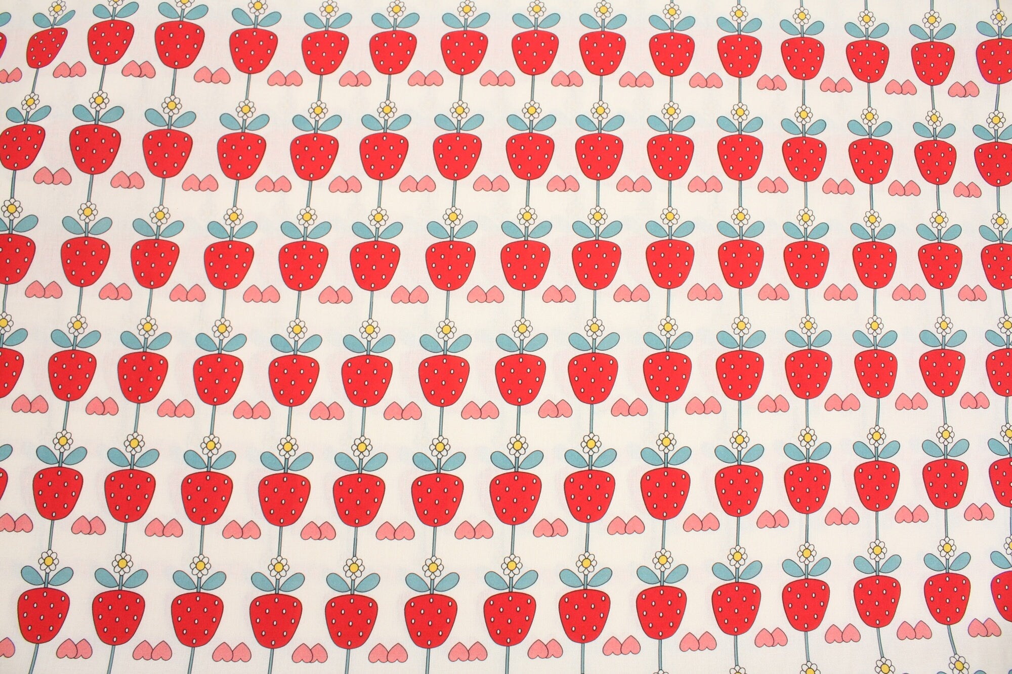 イチゴとイチゴの花柄の生地、かわいい、子供用、裁縫、キルト - 韓国の生地