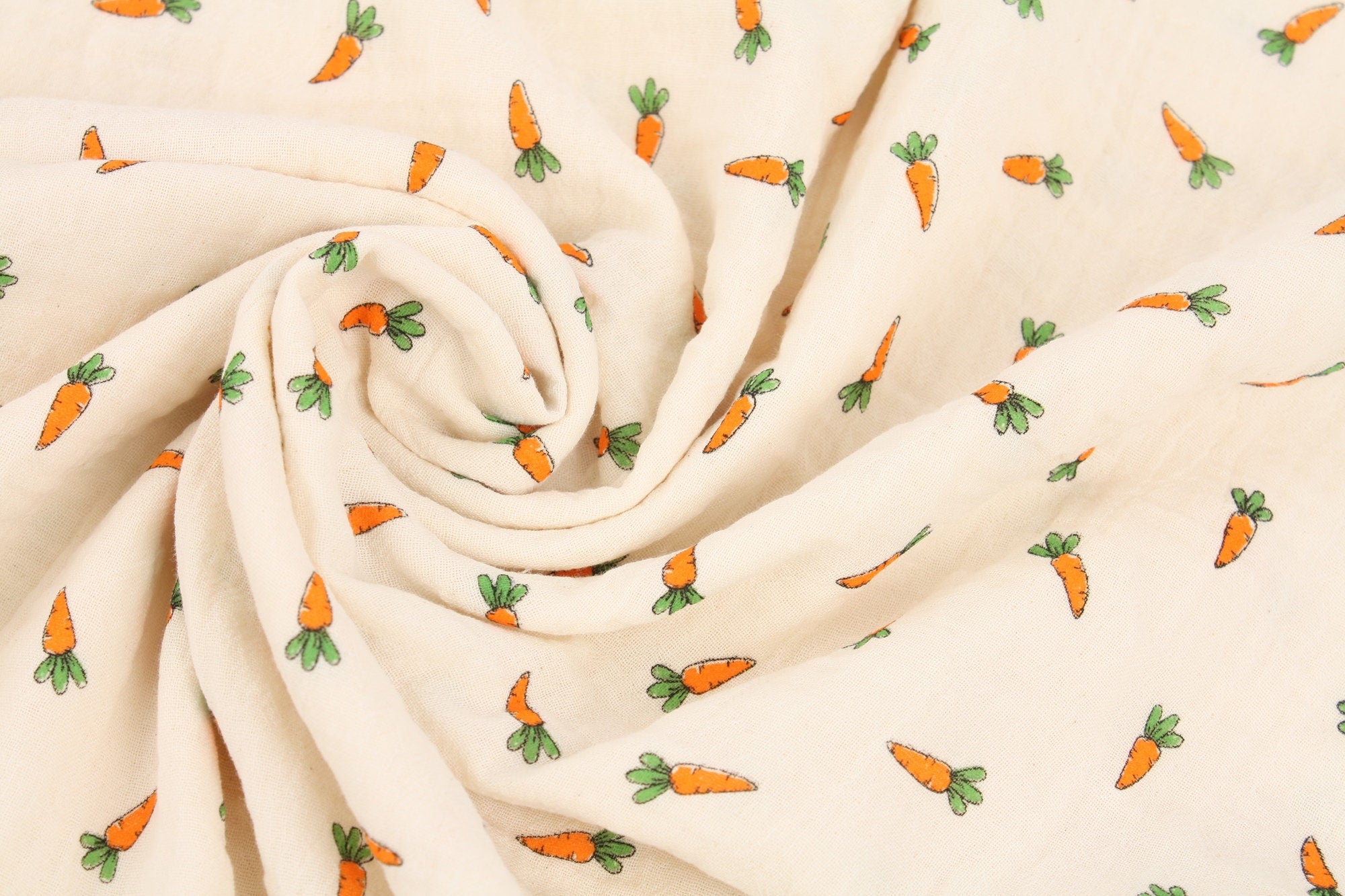 にんじん柄ダブルガーゼ生地、かわいい、子供用、裁縫、キルト - 韓国生地