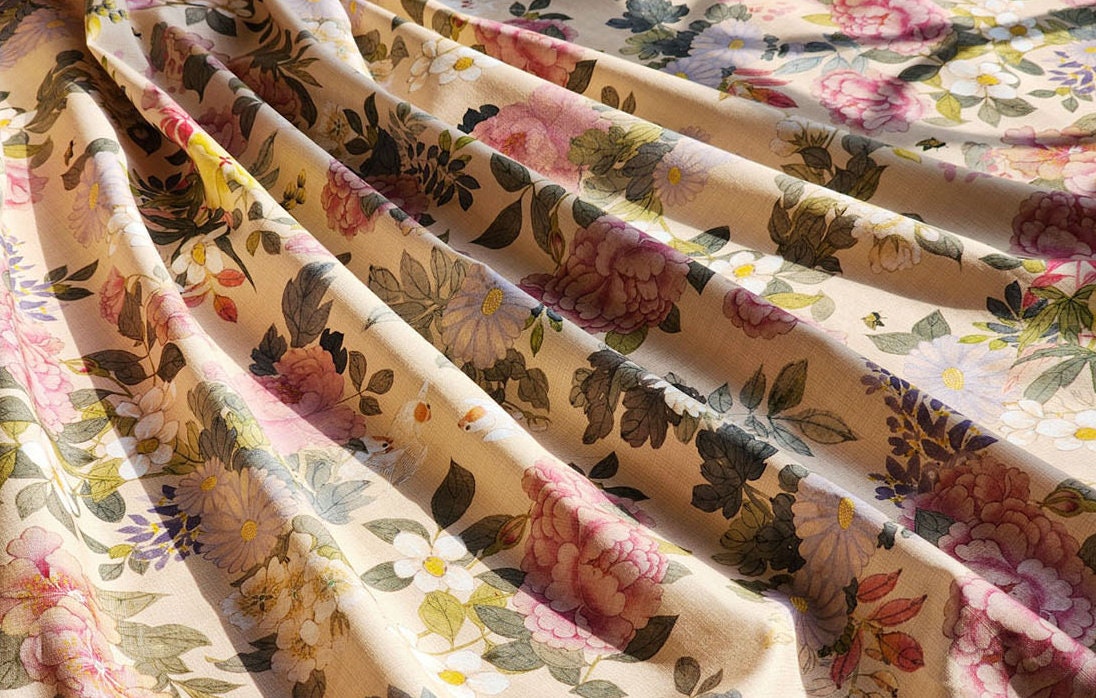 この生地はDTP(デジタルテキスタイルプリント)方式で印刷されています