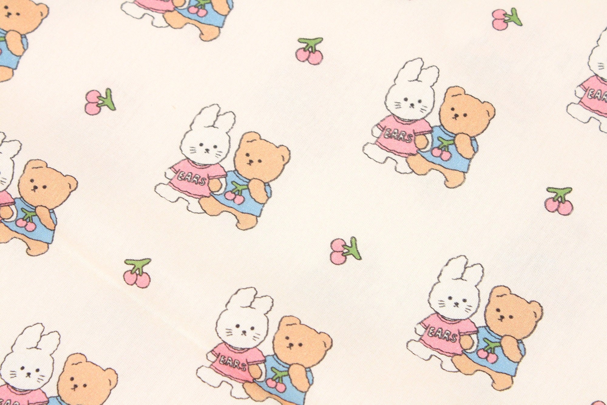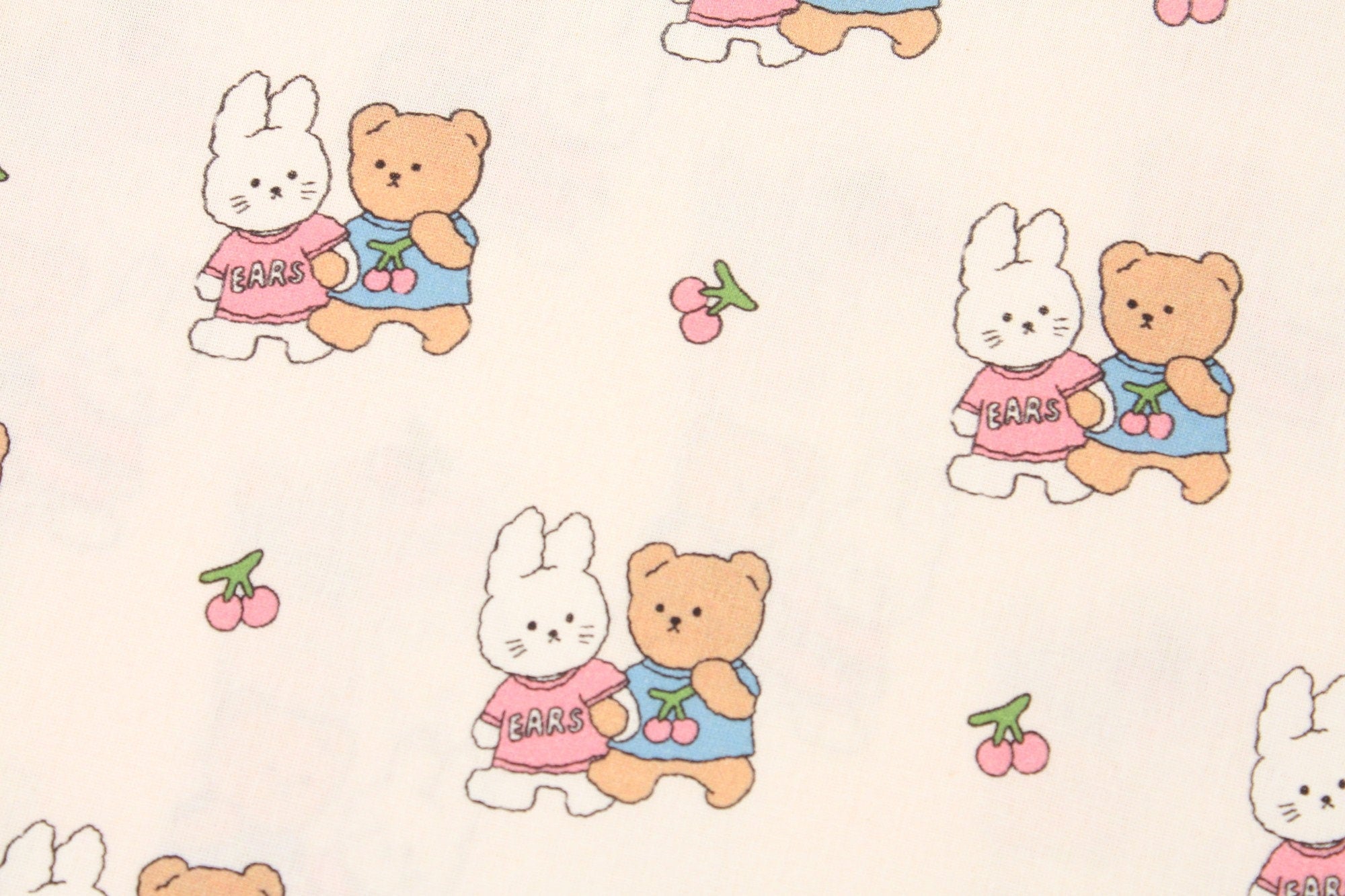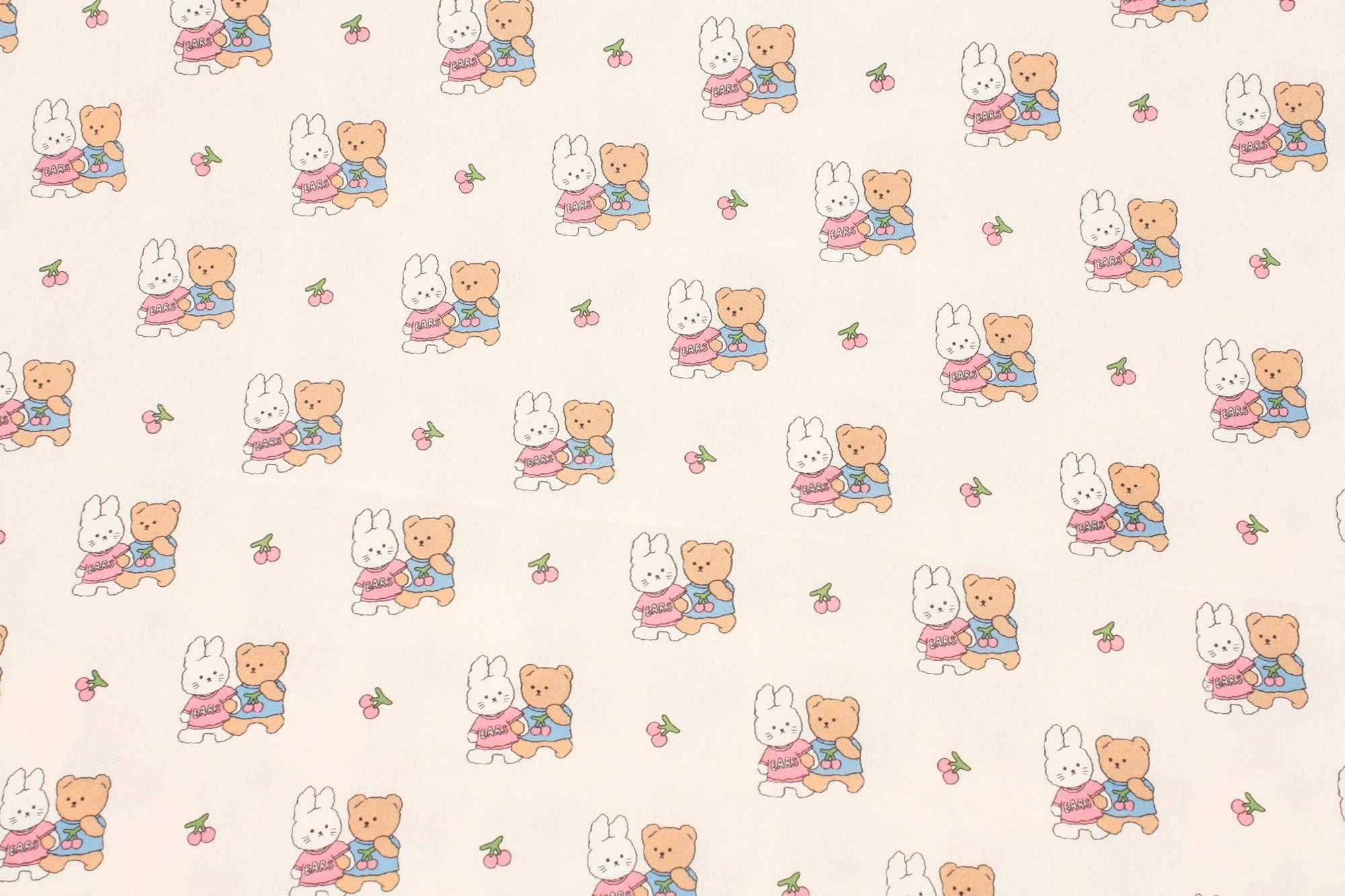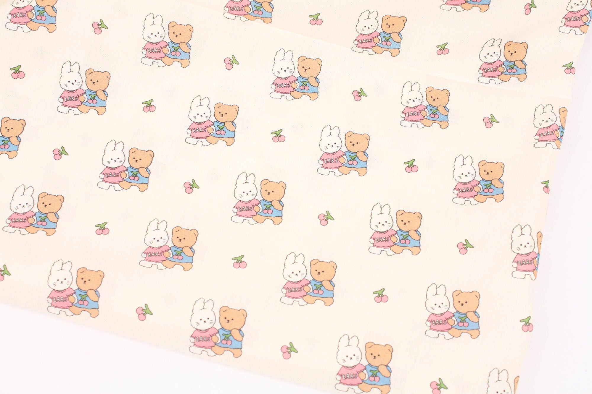 ベストフレンズ ウサギ クマ 柄生地、かわいい、子供用、裁縫、キルト - 韓国生地