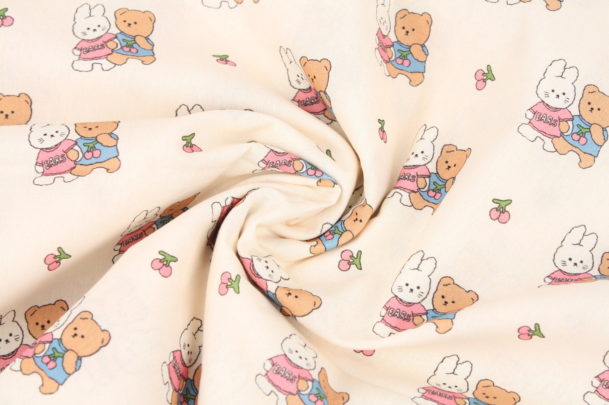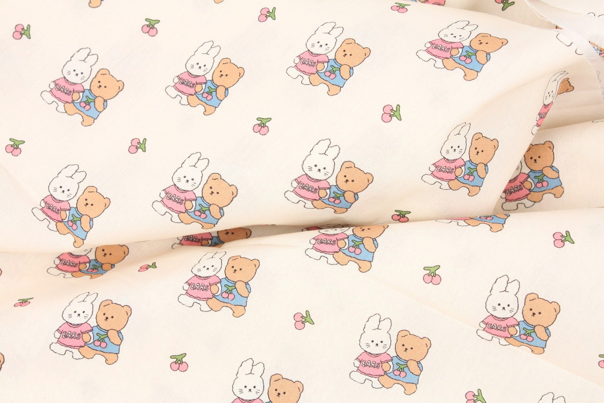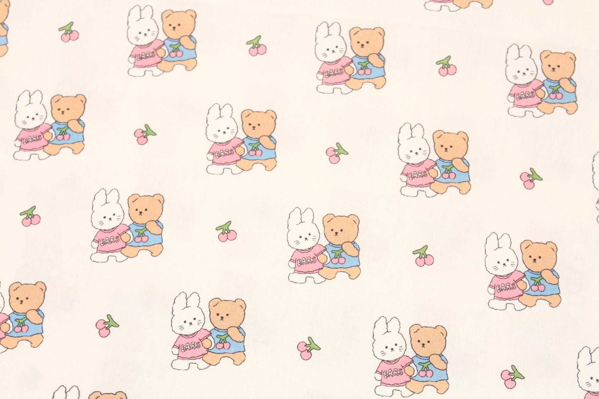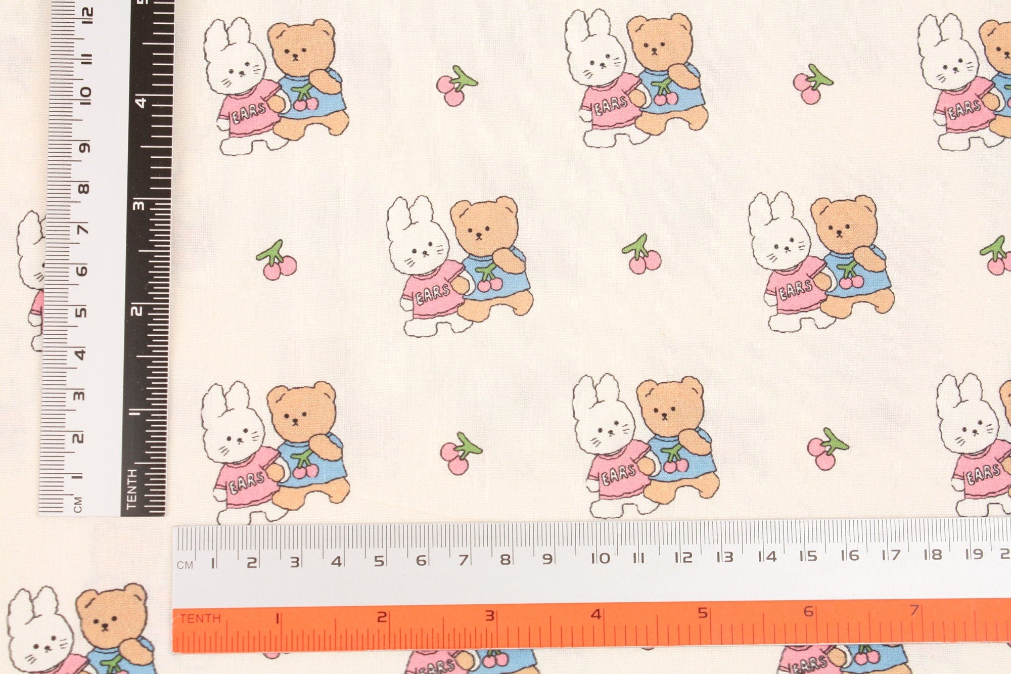 ベストフレンズ ウサギ クマ 柄生地、かわいい、子供用、裁縫、キルト - 韓国生地