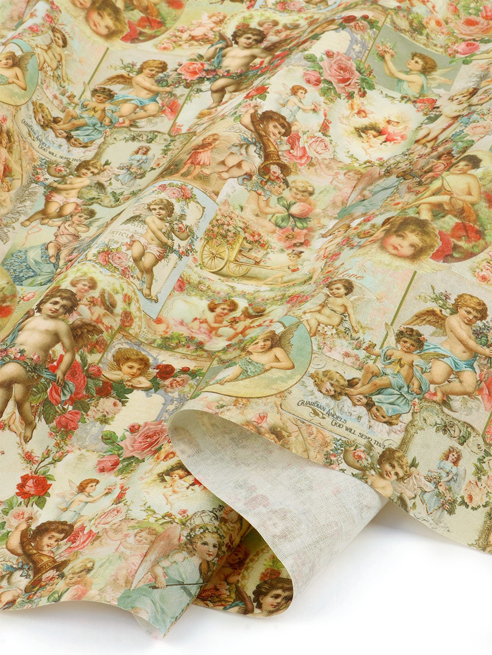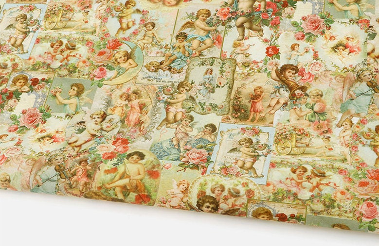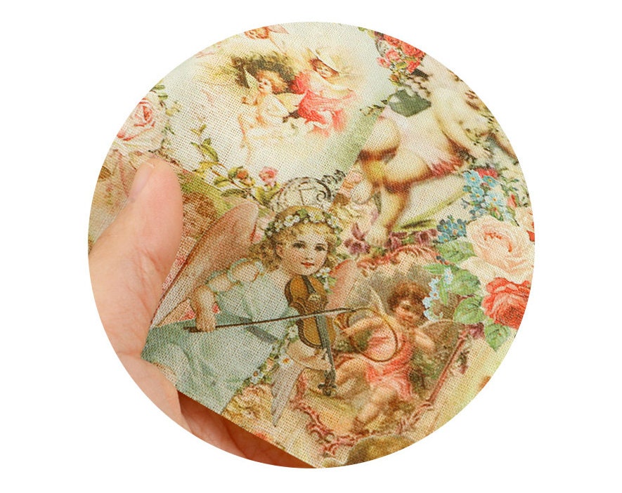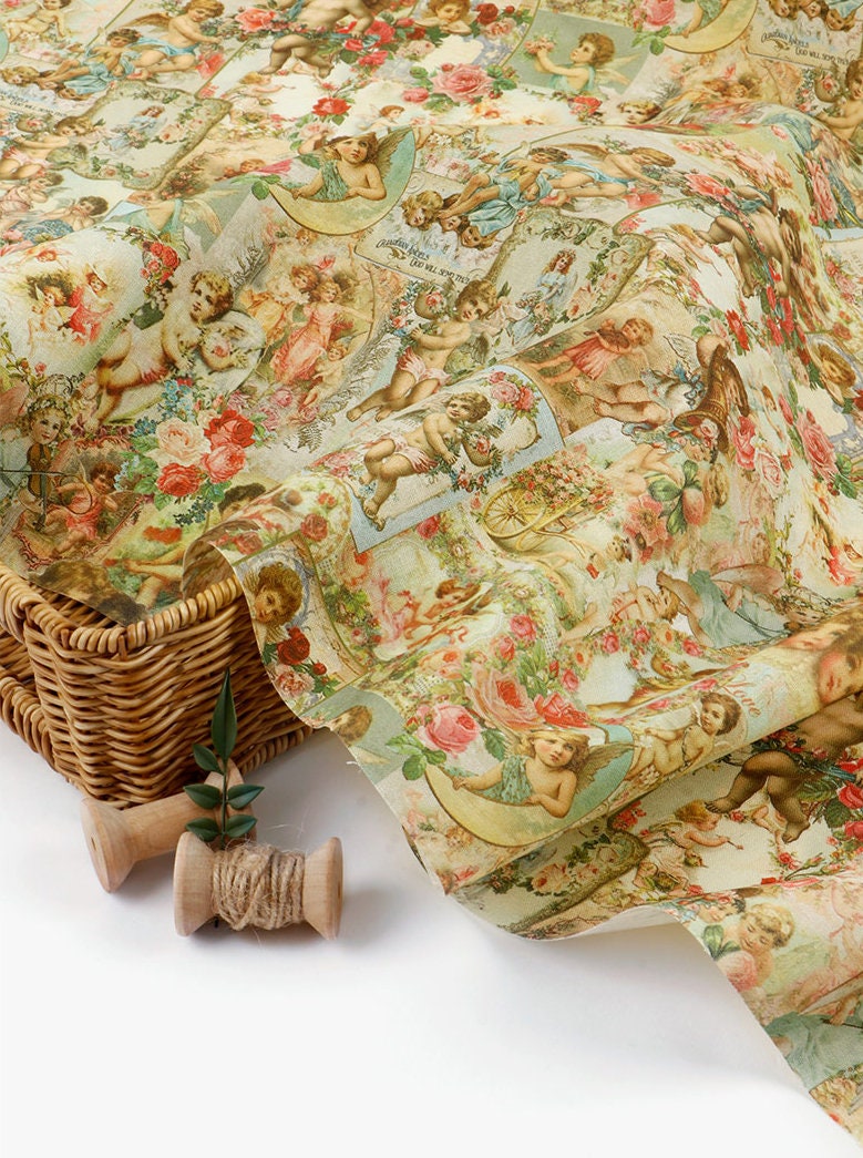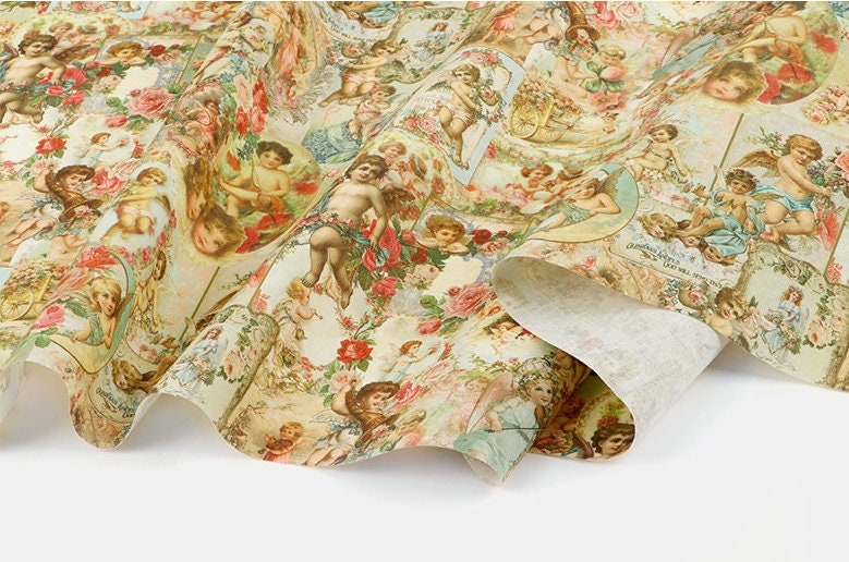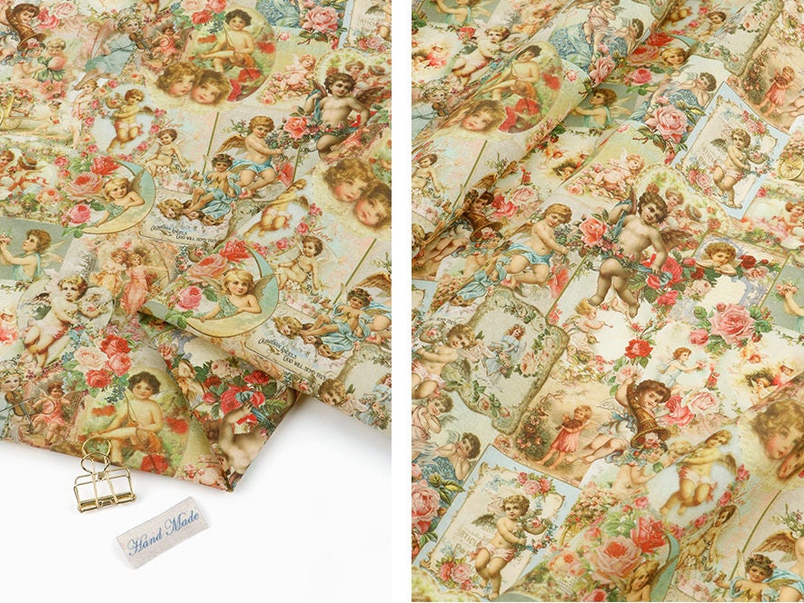 ヴィンテージの可愛い天使キューピッド柄生地(韓国製)/ハーフヤード