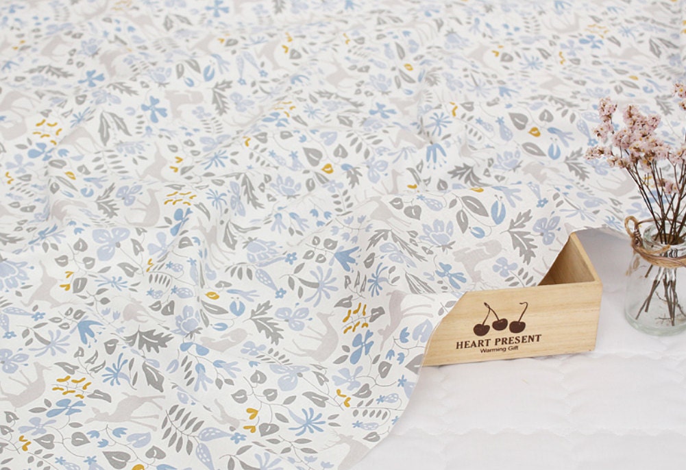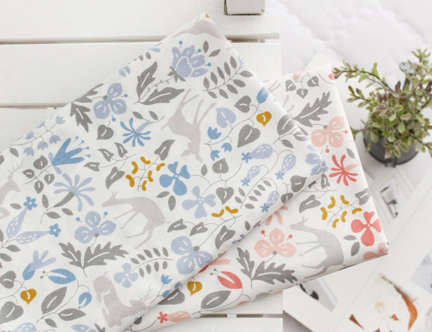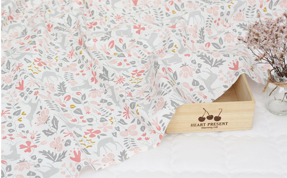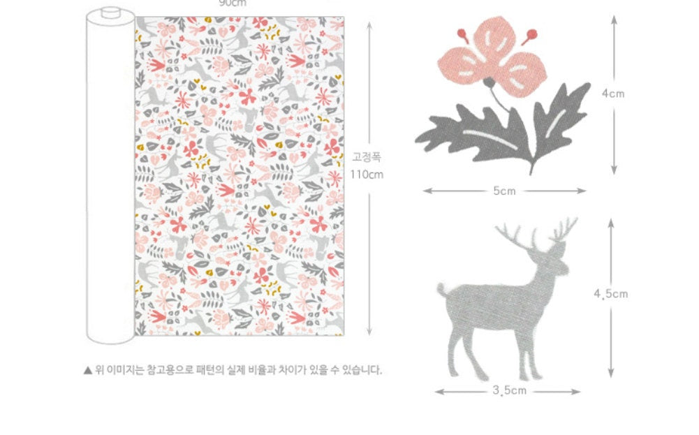 花、木、鹿の生地 - 韓国の生地