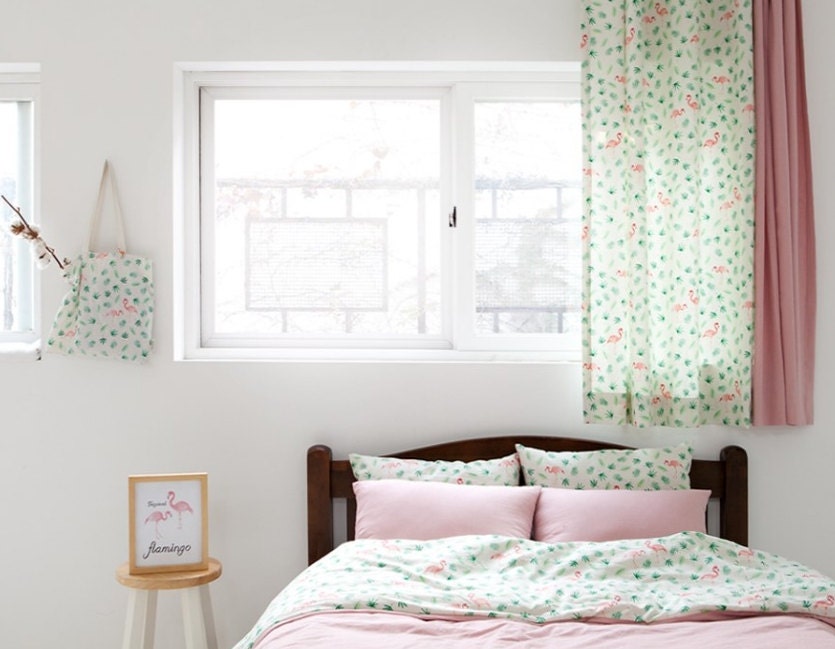 トロピカルフラミンゴ柄生地 - 韓国生地