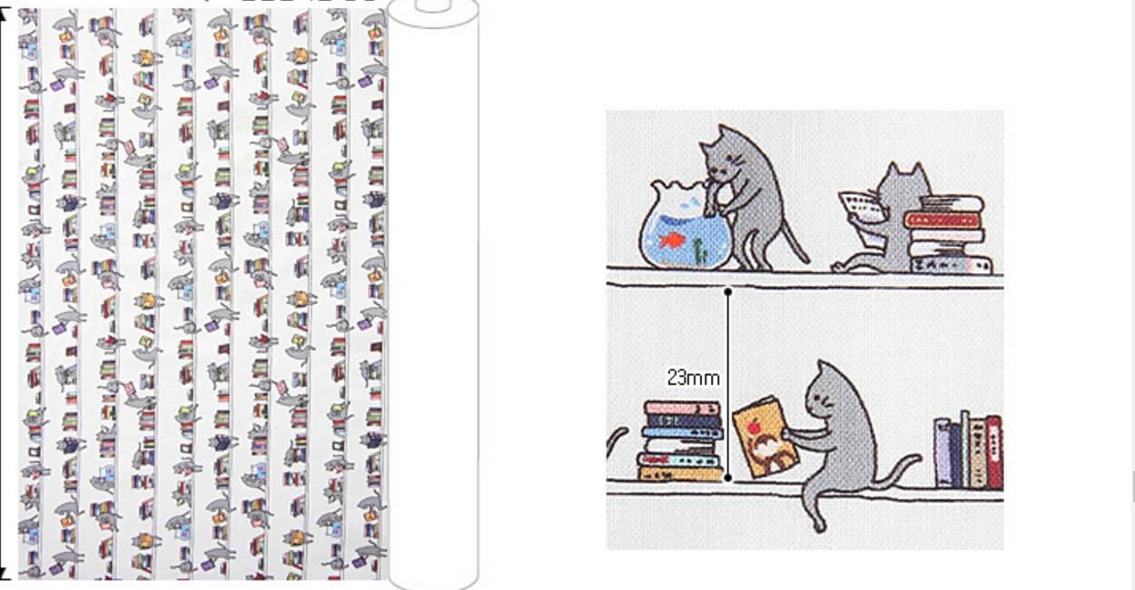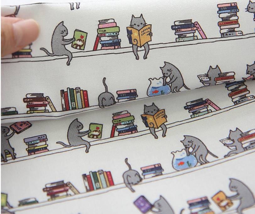 図書館猫柄生地 - 韓国生地
