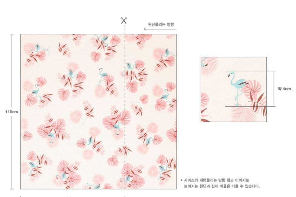 トロピカルフラミンゴモンステラ柄生地 - 韓国生地