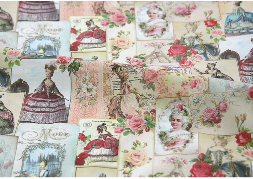 ヴィンテージ エレガント 女性 ラベル 柄 生地 - 韓国 生地
