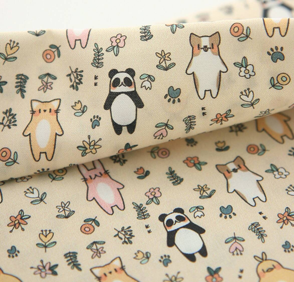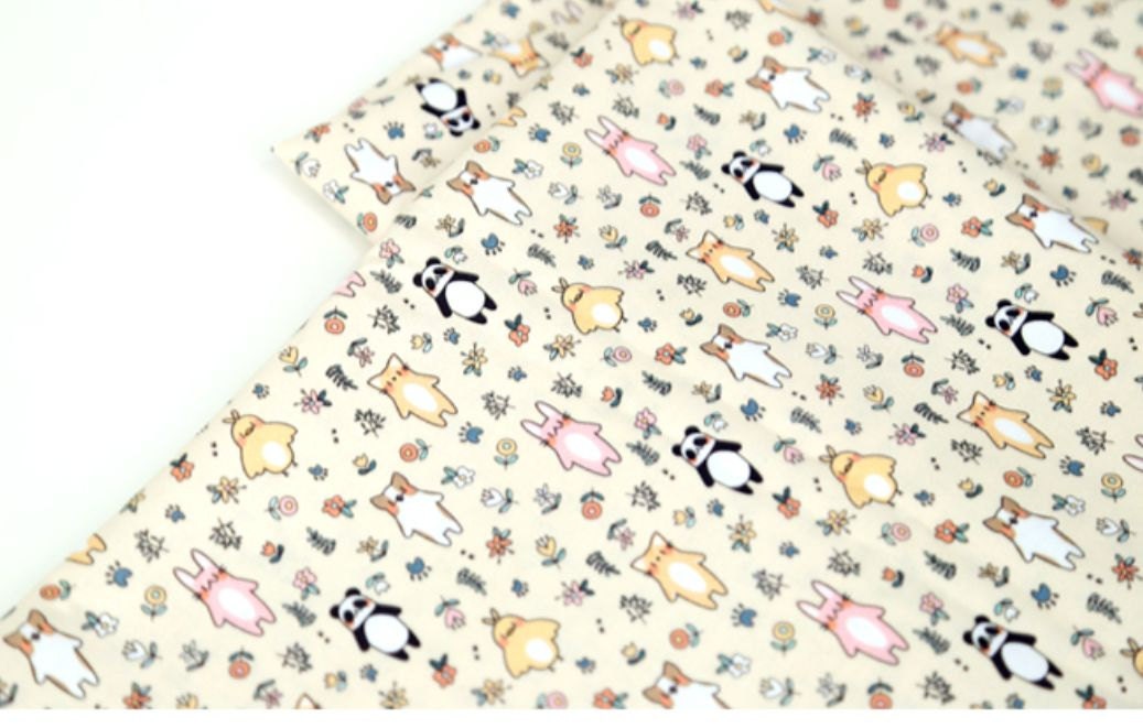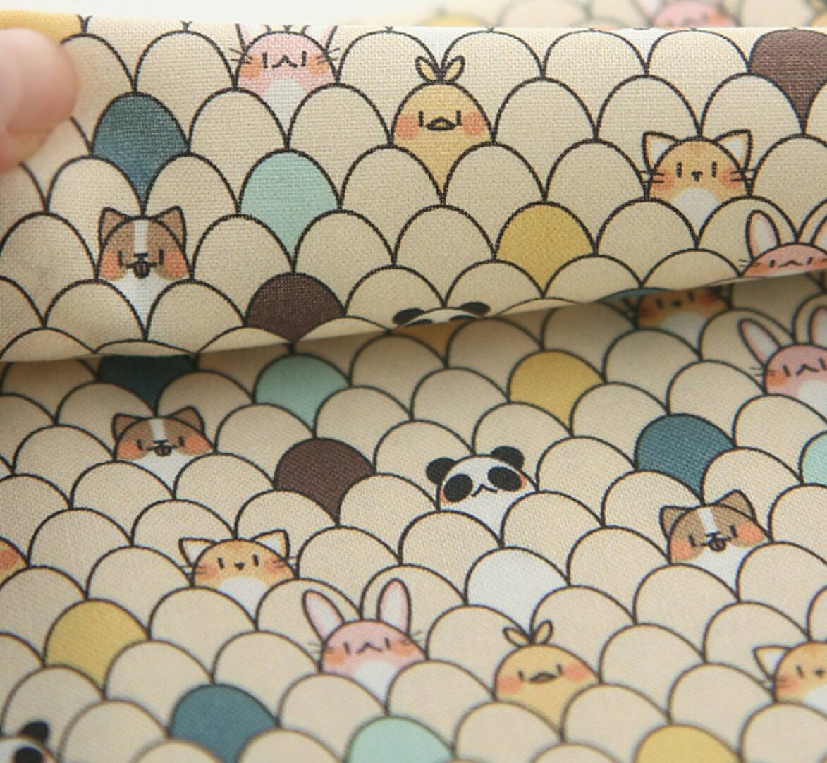 卵の花の動物柄の生地、かわいい、子供用、裁縫、キルト - 韓国の生地