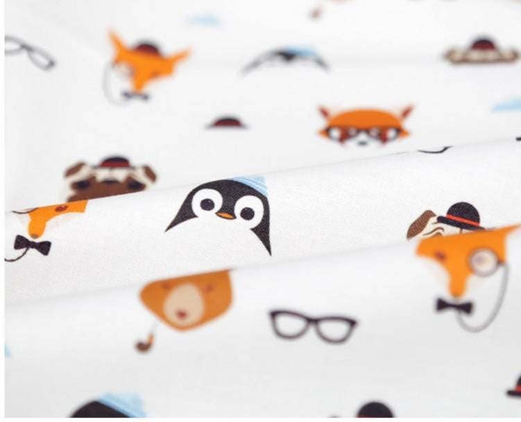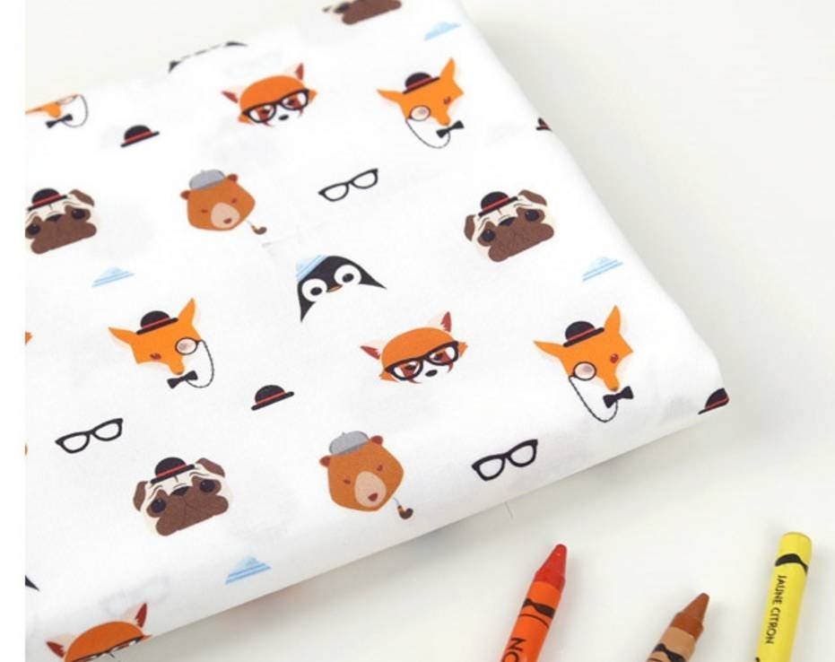 メガネの動物の顔柄生地、かわいい、子供、裁縫、キルト - 韓国の生地