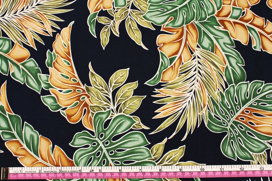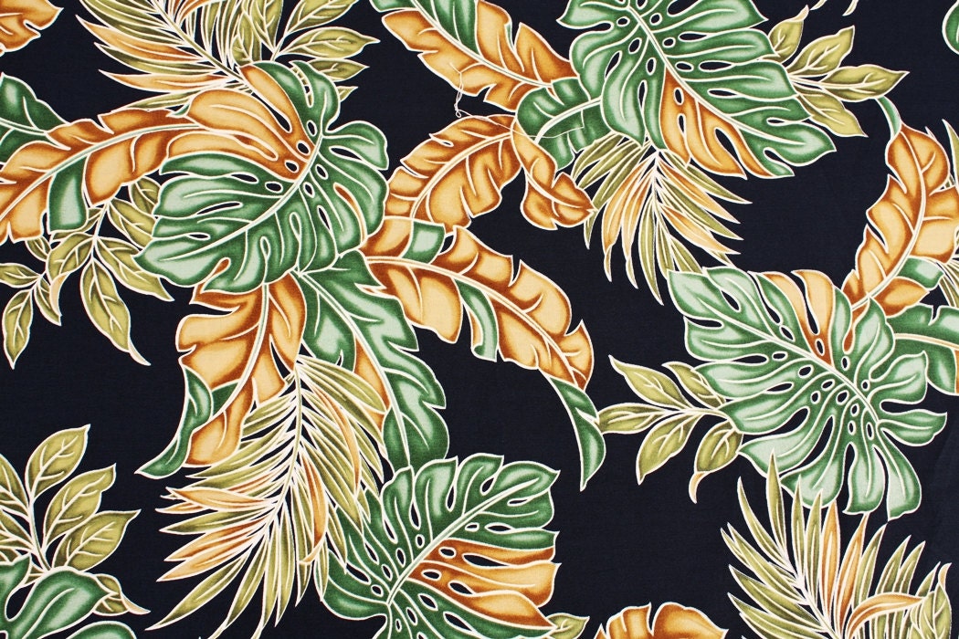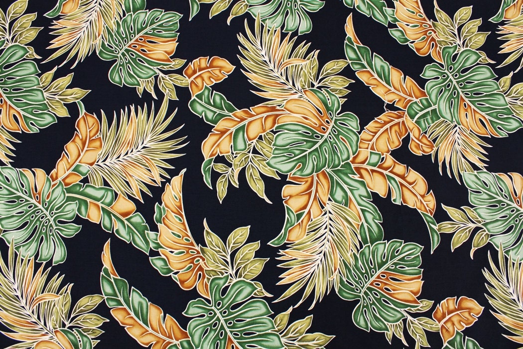 ハワイアンモンステラプリント生地、ヤシの木生地