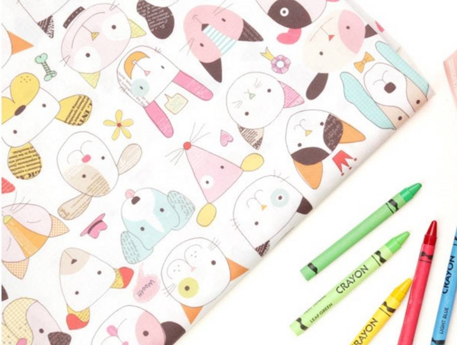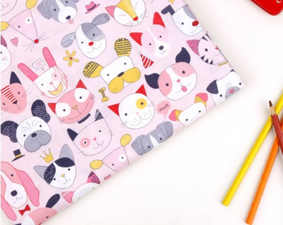 動物の顔、犬、猫、ウサギ、ネズミの柄の生地、かわいい、子供、裁縫、キルト - 韓国の生地