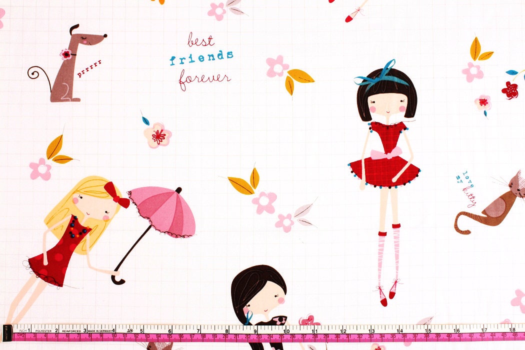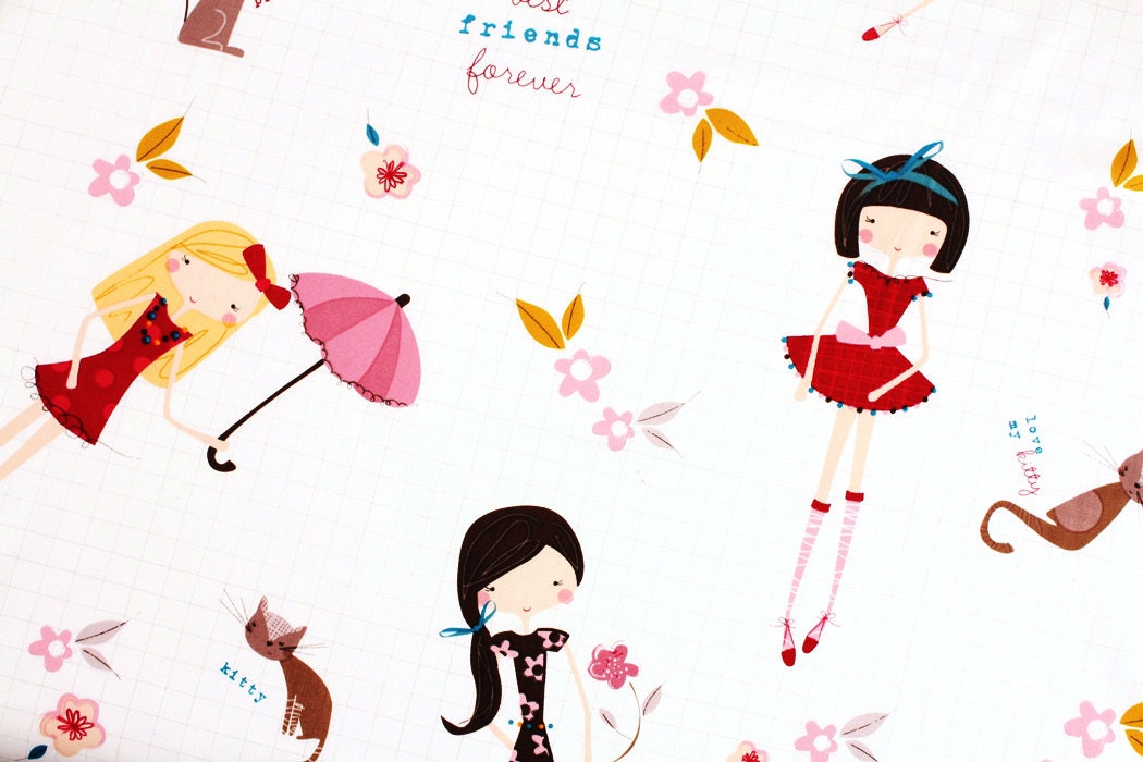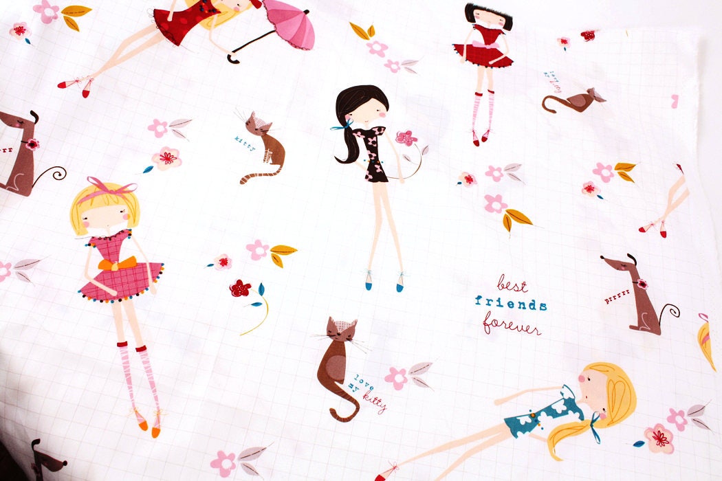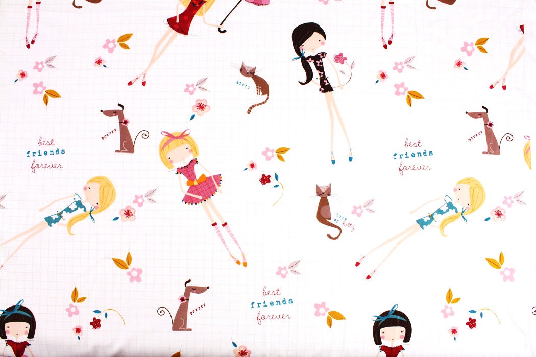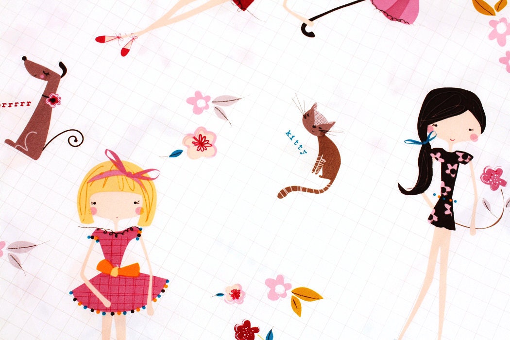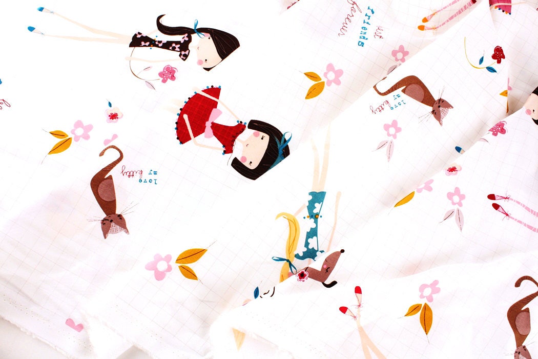 かわいい女の子の犬猫の生地 - 韓国の生地