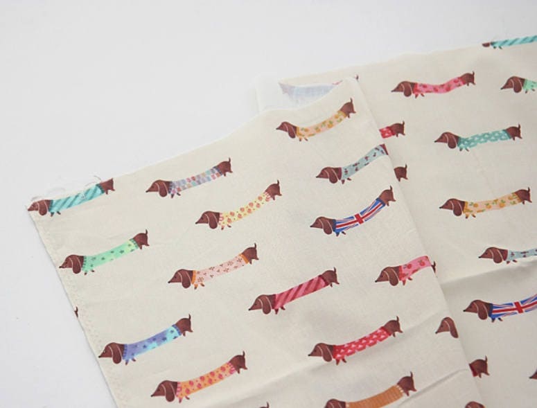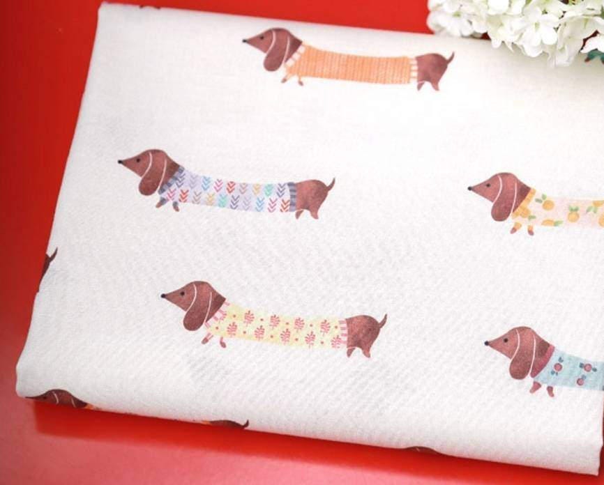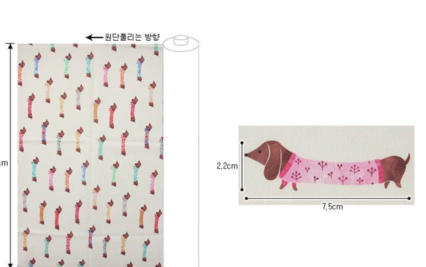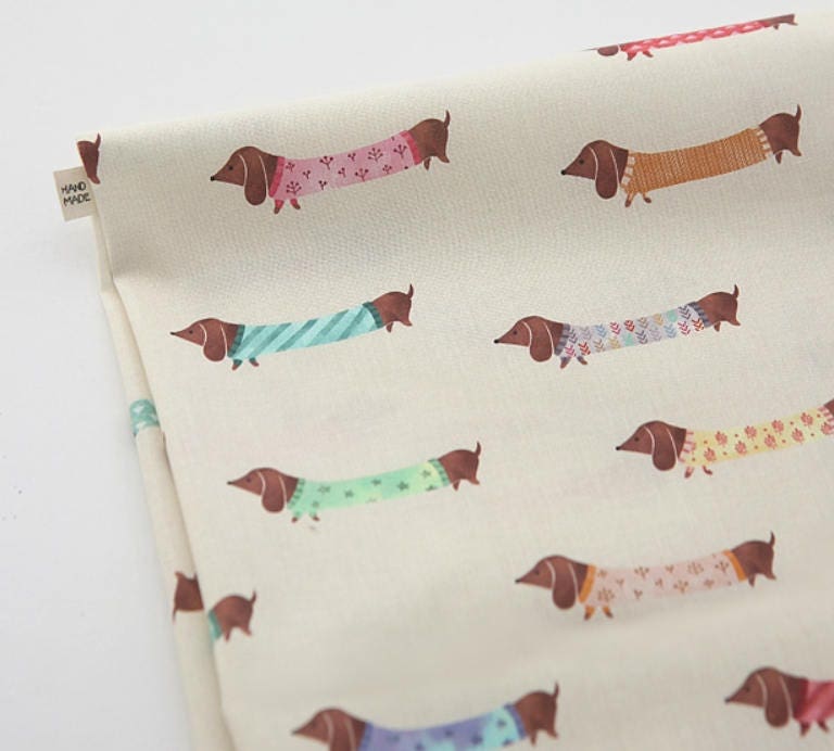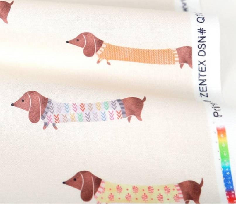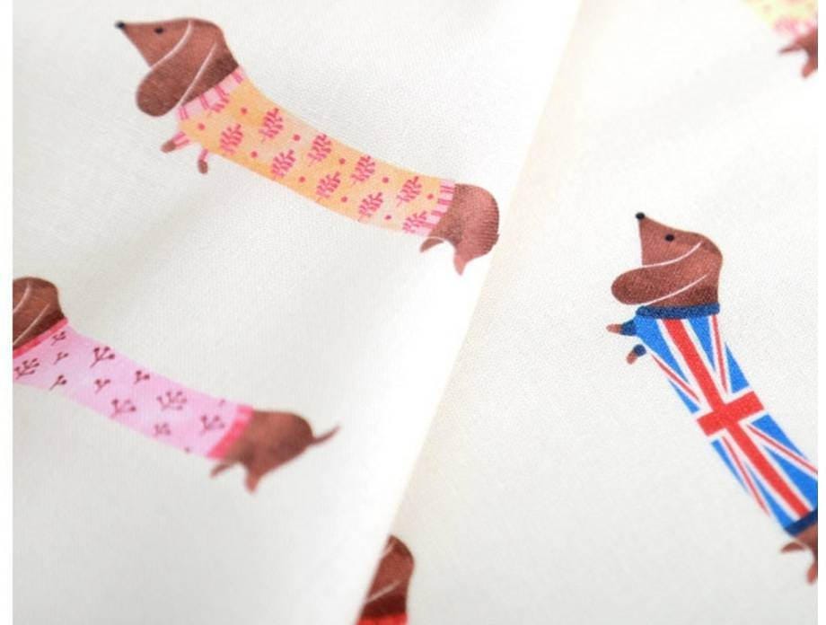 犬、子犬、ダックスフント柄生地 - 韓国生地