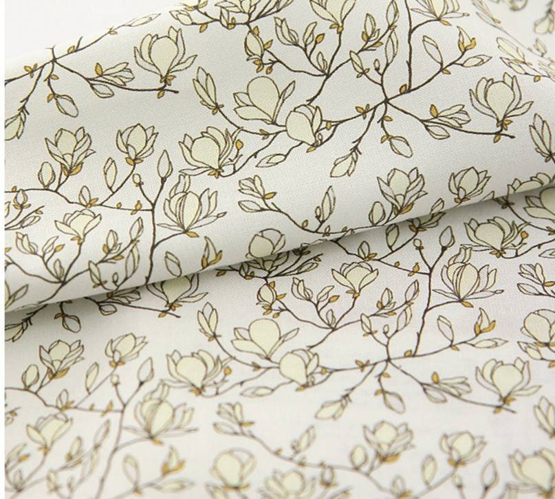 マグノリアの花柄生地、かわいい、裁縫、キルト - 韓国の生地