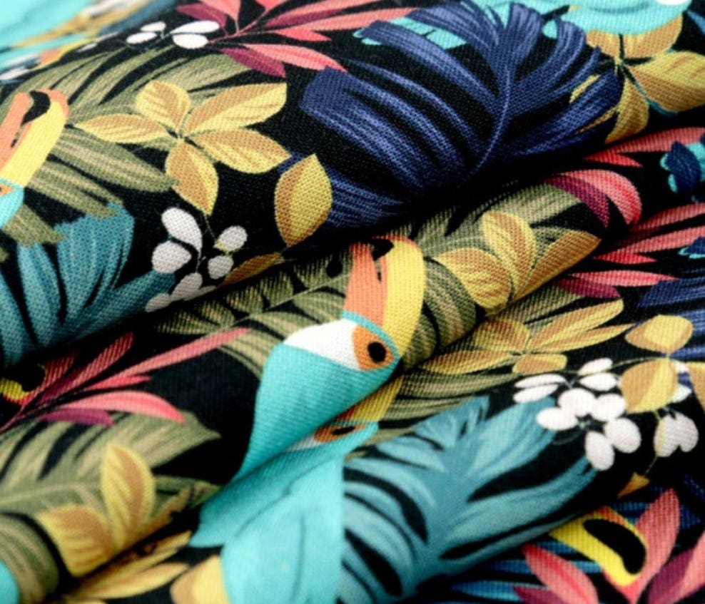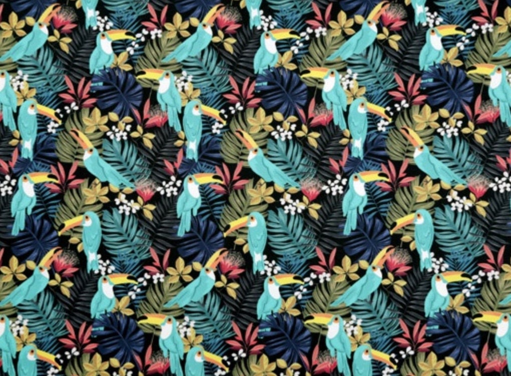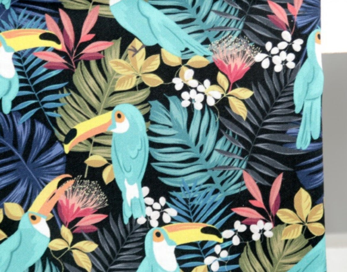 トロピカルリーフトゥーカン柄生地、かわいい、裁縫、キルト - 韓国生地