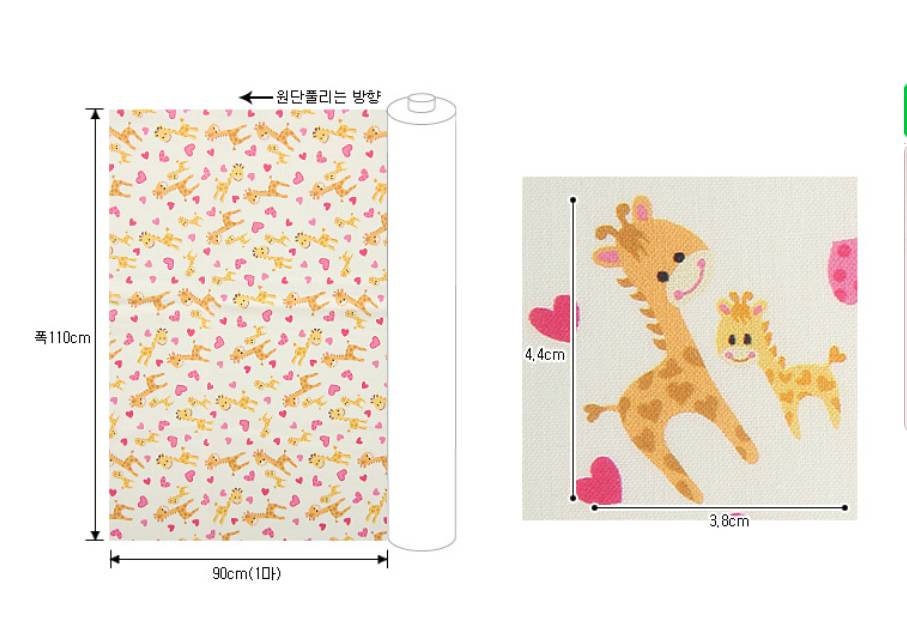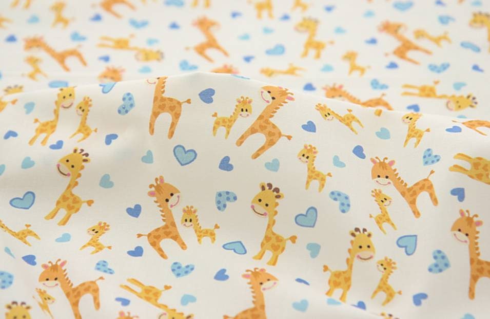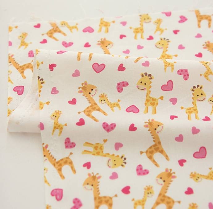 かわいい赤ちゃんキリンのハート柄生地、かわいい、子供、裁縫、キルト - 韓国生地