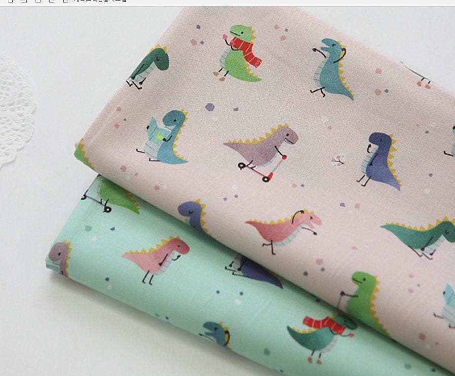 恐竜ティラノサウルス ブラキオサウルス 柄生地、かわいい、子供用、裁縫、キルト - 韓国生地