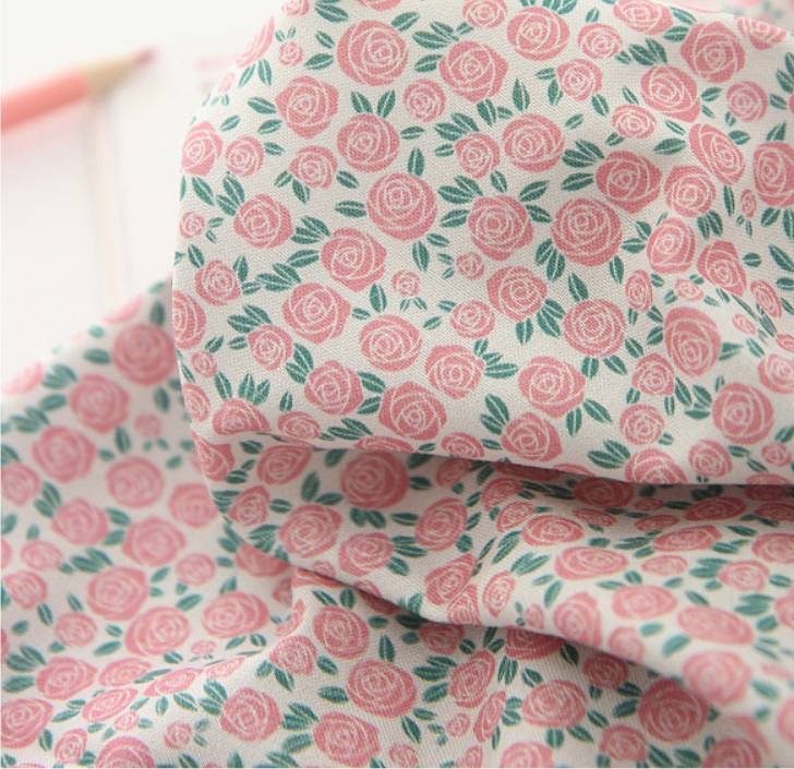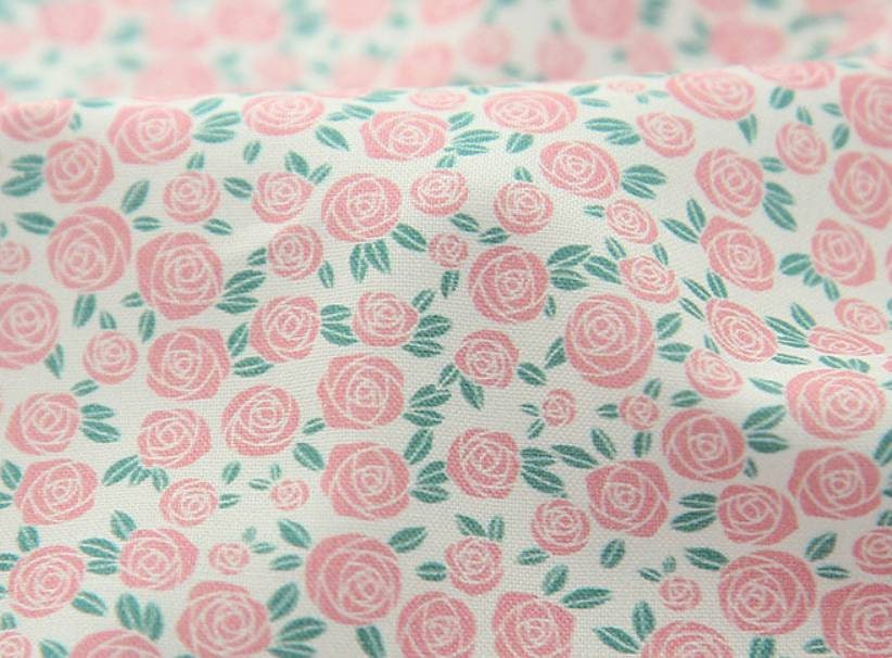 ピンクのバラの花柄生地、かわいい、裁縫、キルト - 韓国の生地