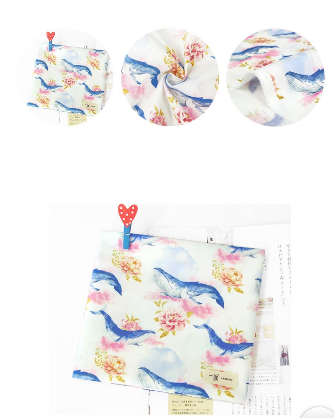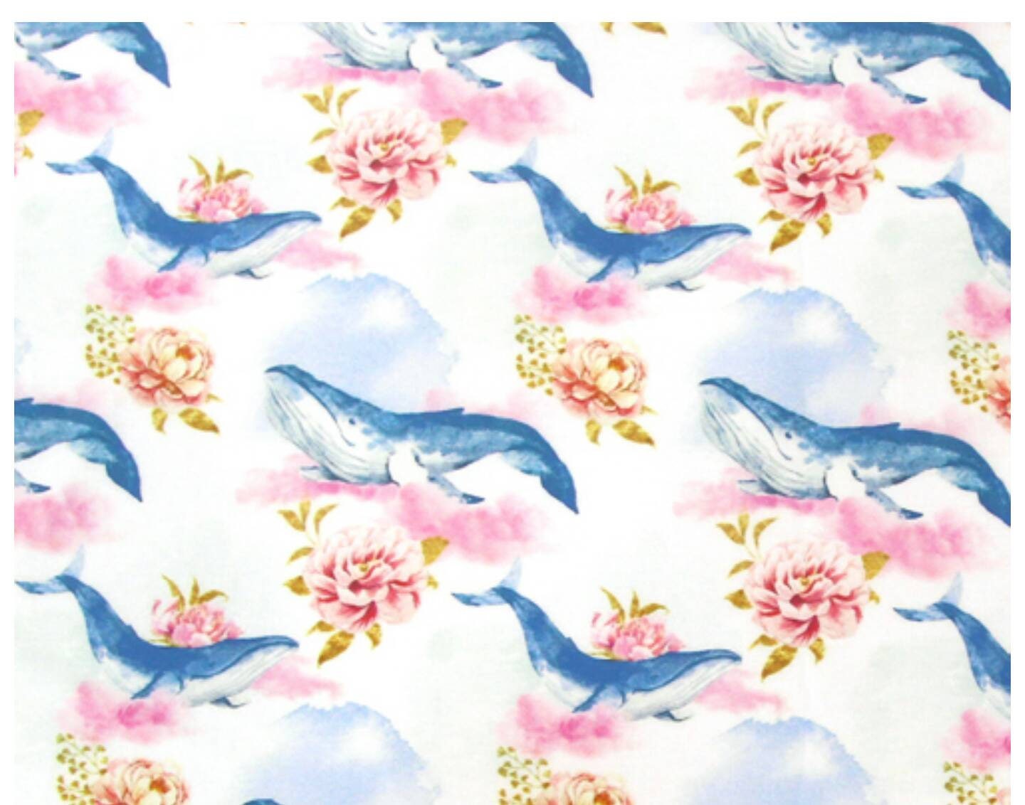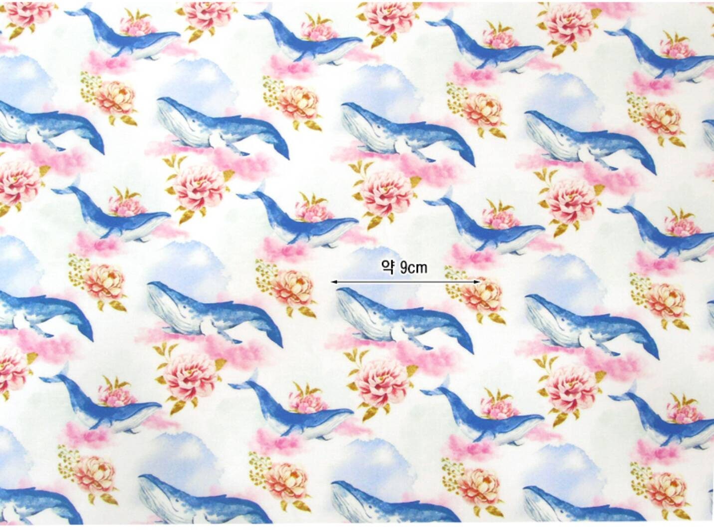 クジラの花柄生地、かわいい、子供用、裁縫、キルト - 韓国の生地