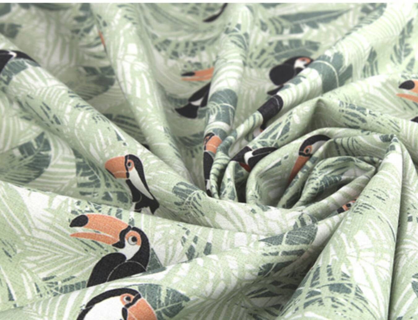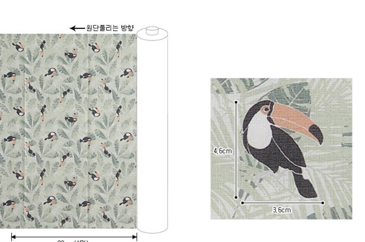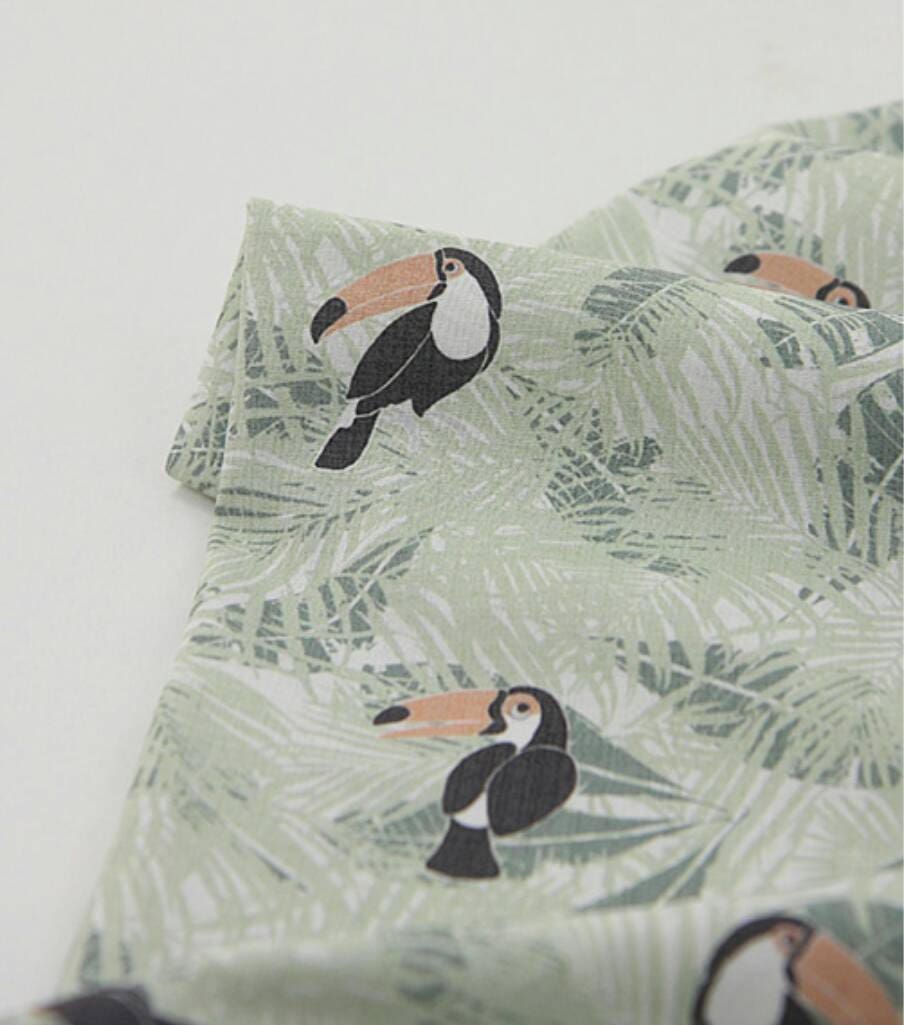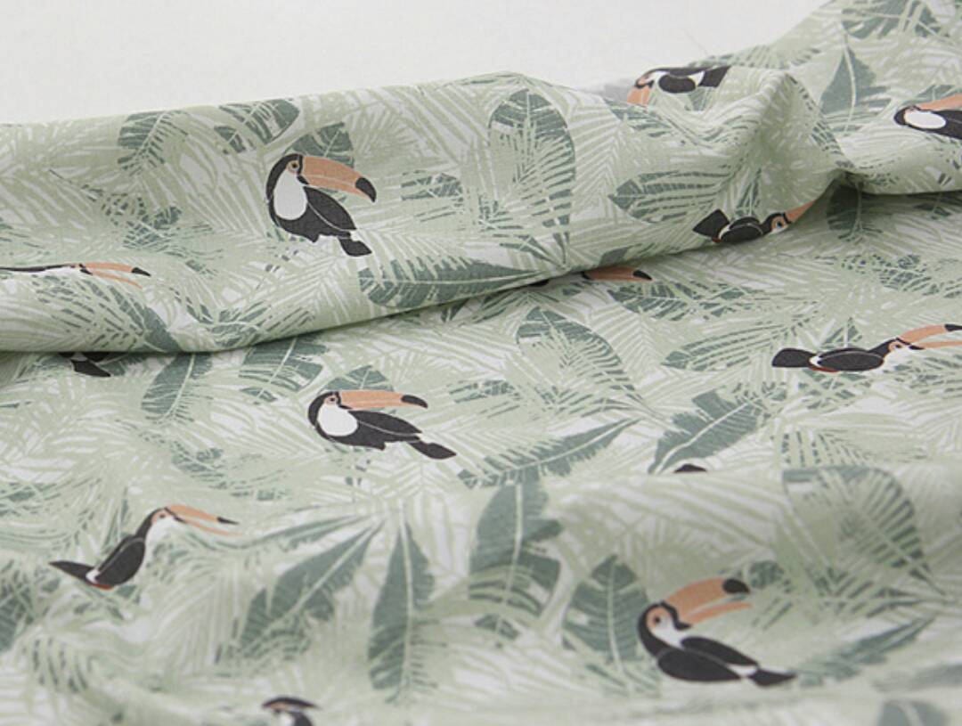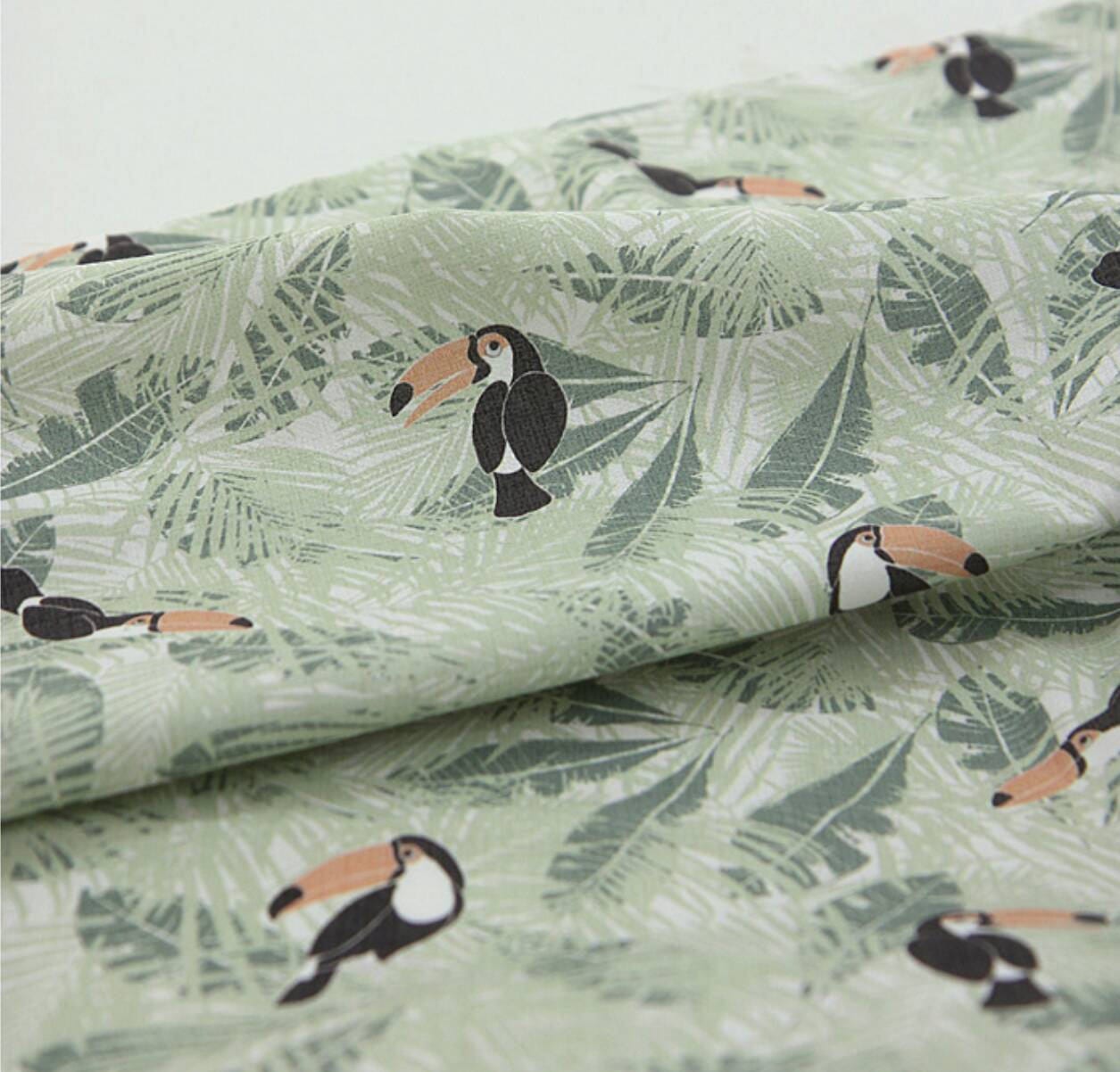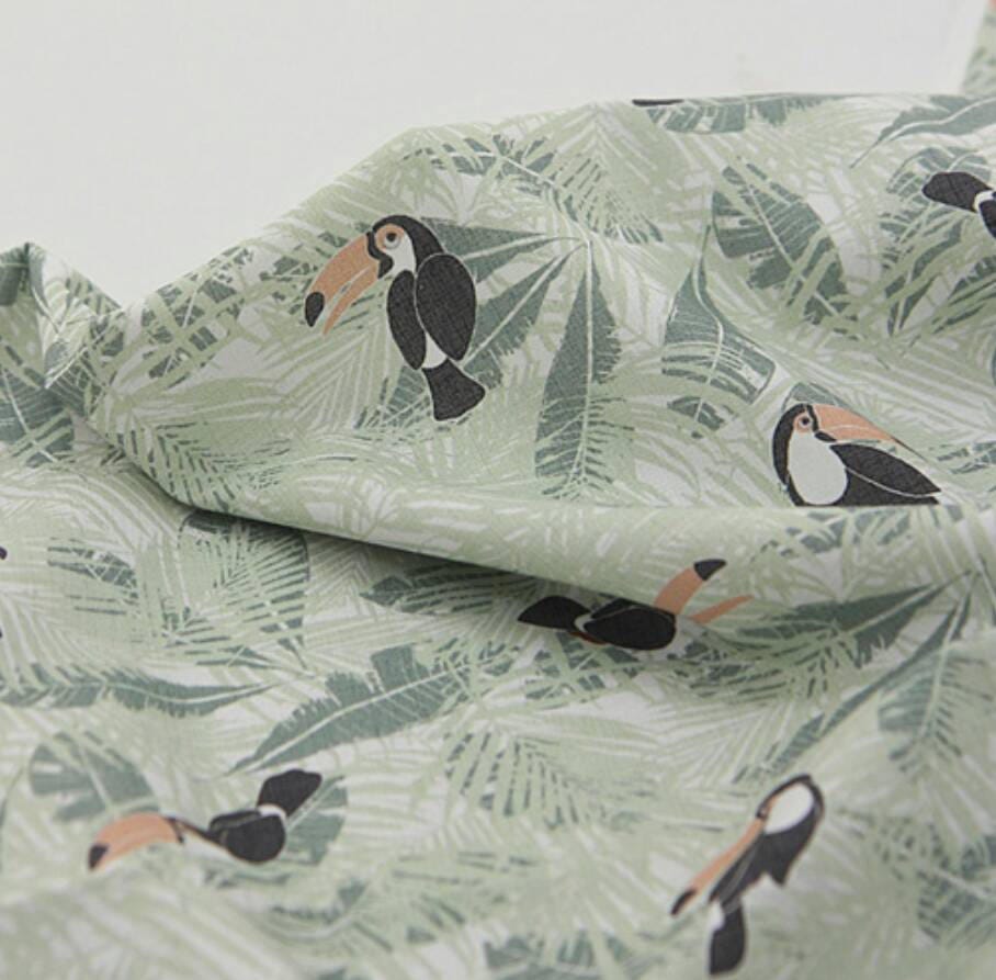 トロピカルリーフトゥーカン柄生地、かわいい、裁縫、キルト - 韓国生地