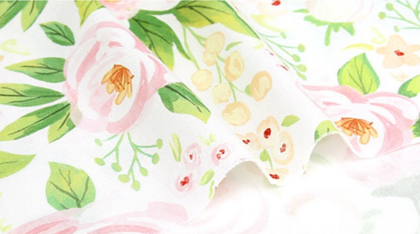 水彩バラ柄生地 - 韓国生地