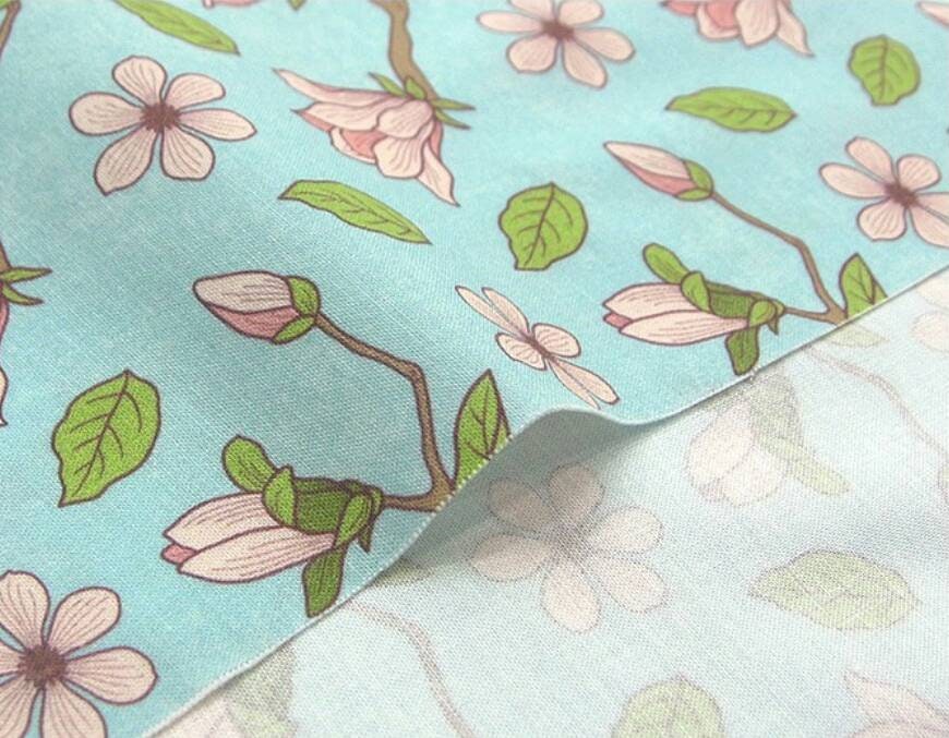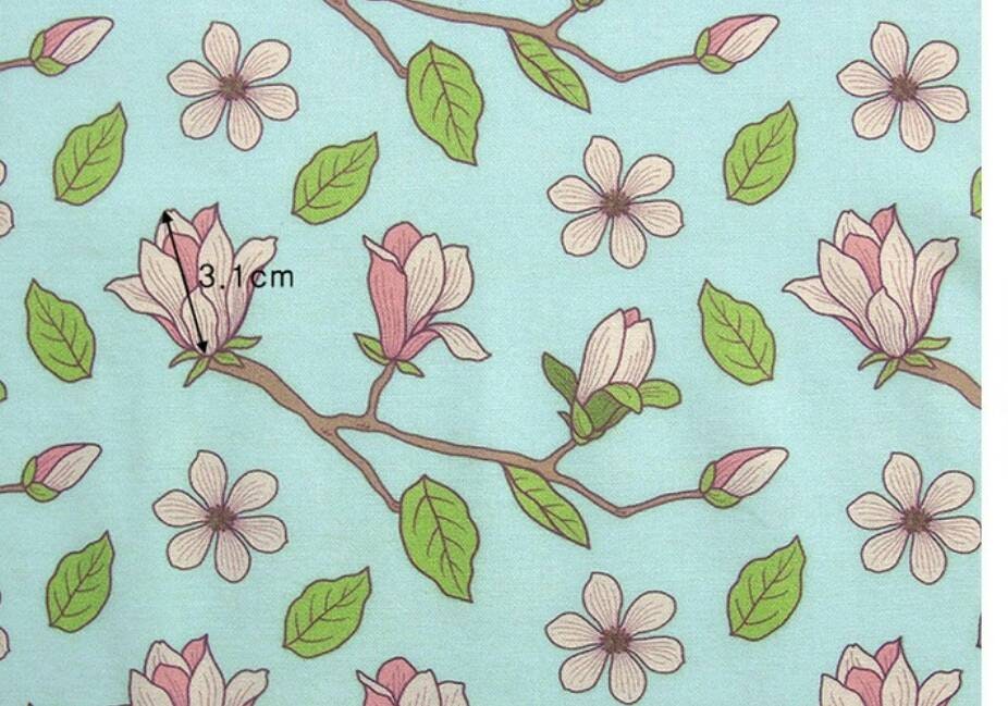マグノリアの花柄生地、かわいい、裁縫、キルト - 韓国の生地