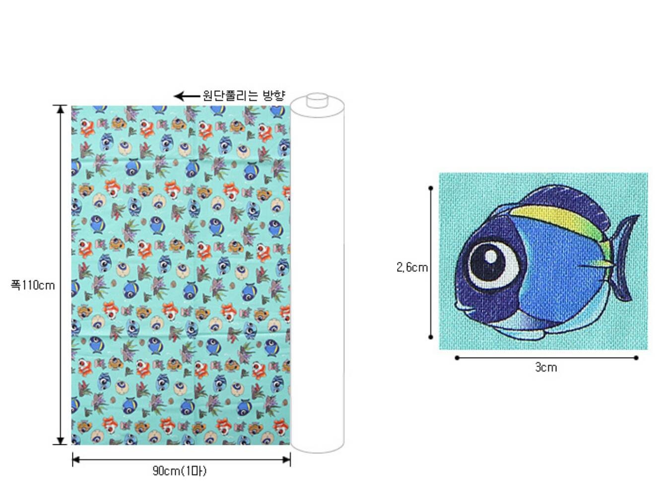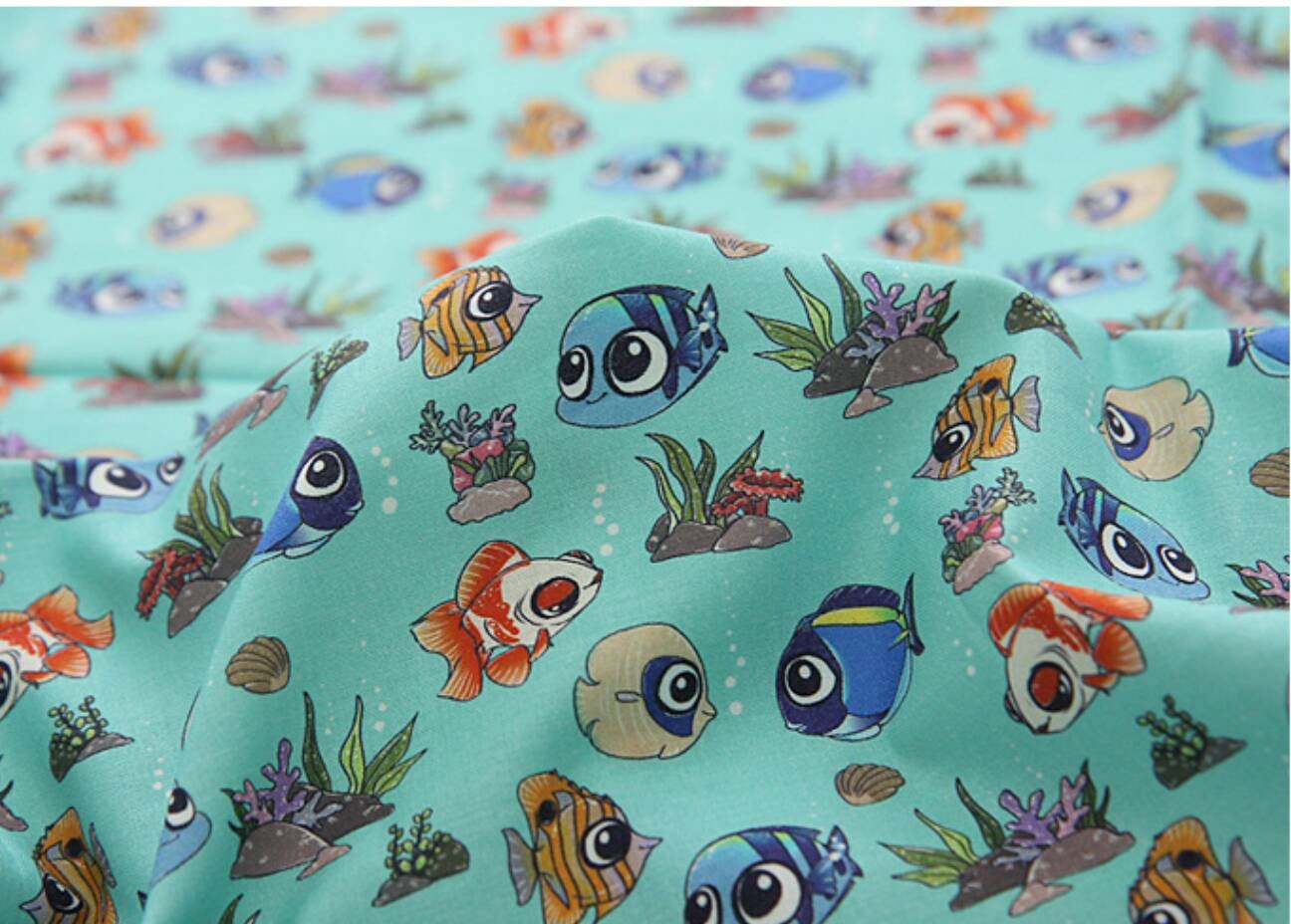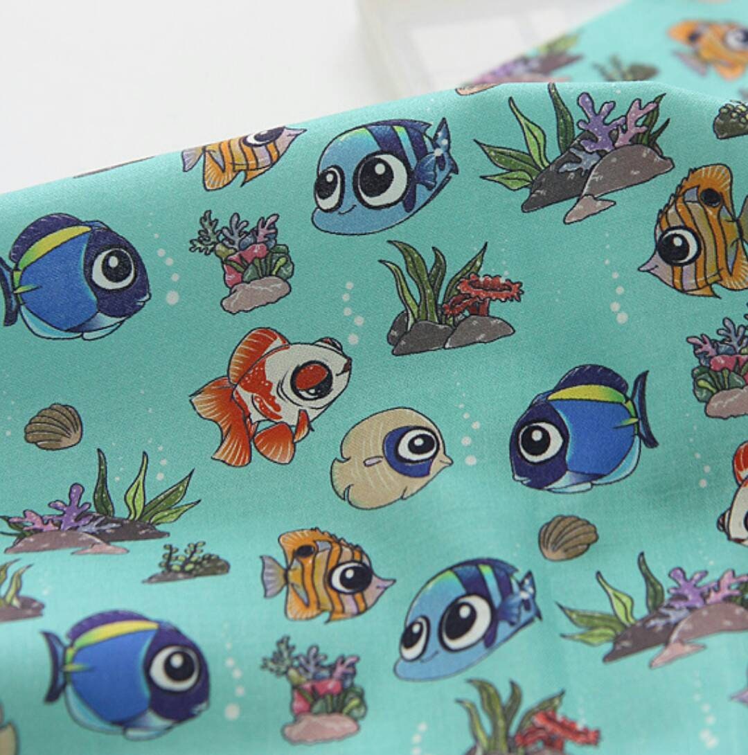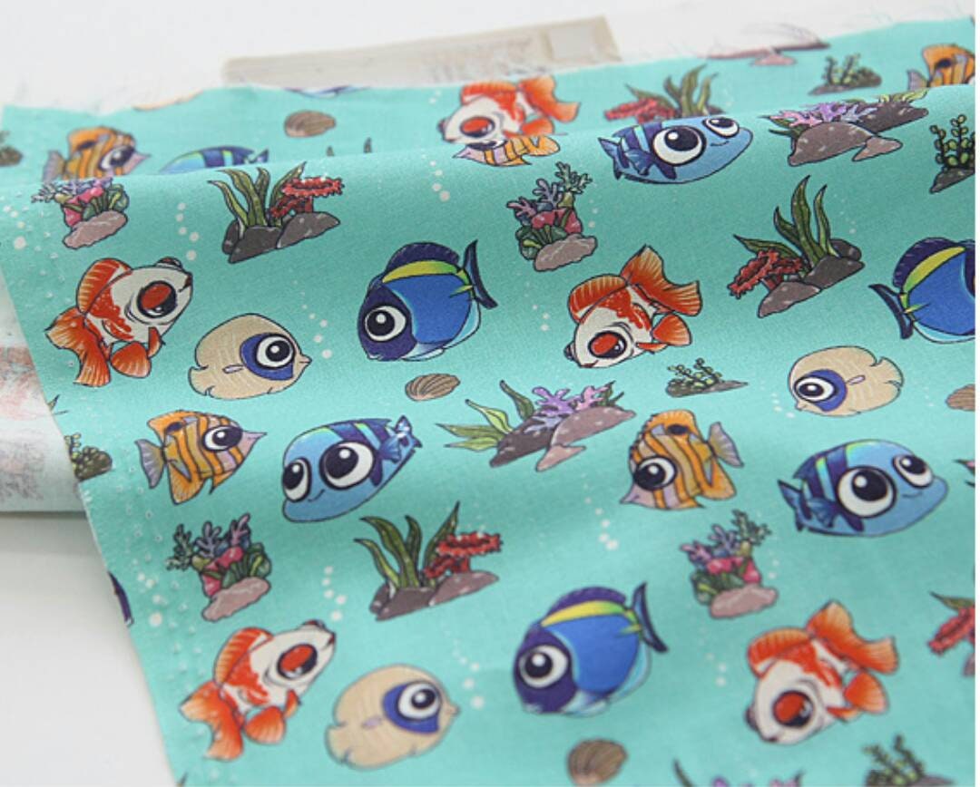 動物、クマノミ、ナンヨウハギのキャラクター生地 - 韓国の生地