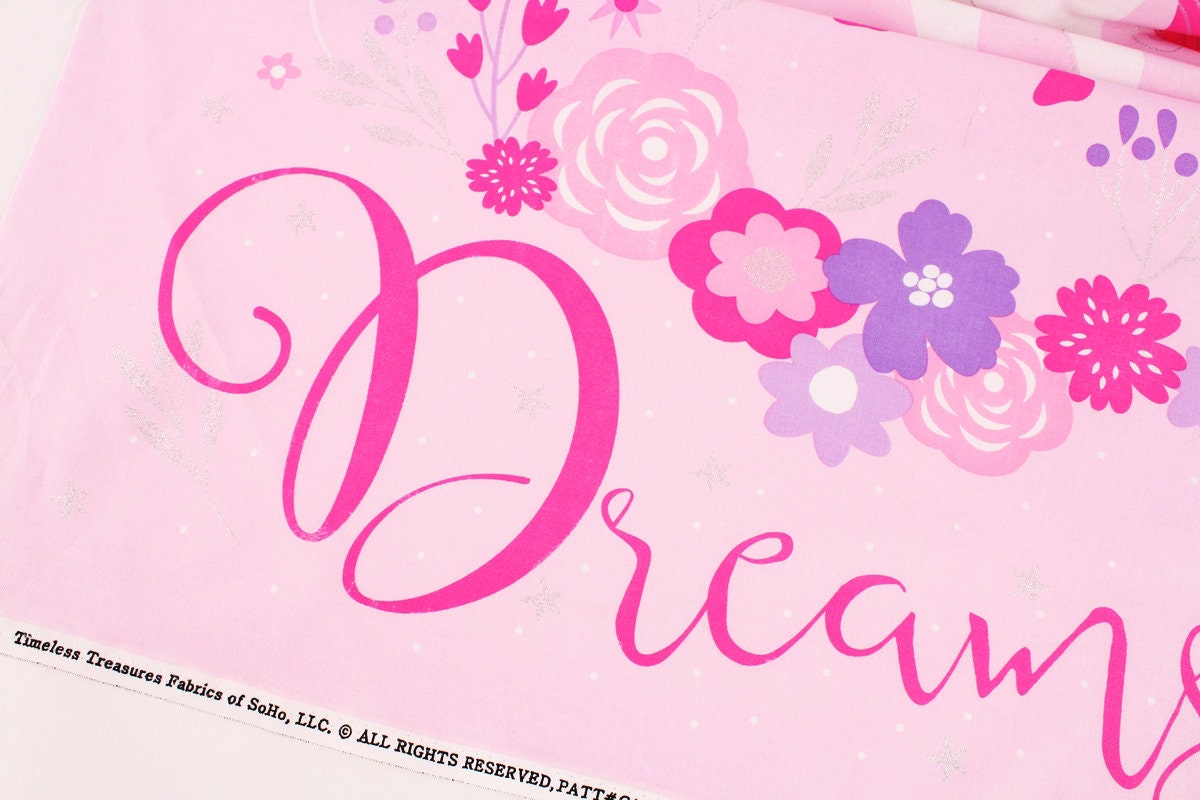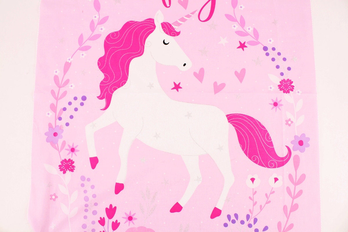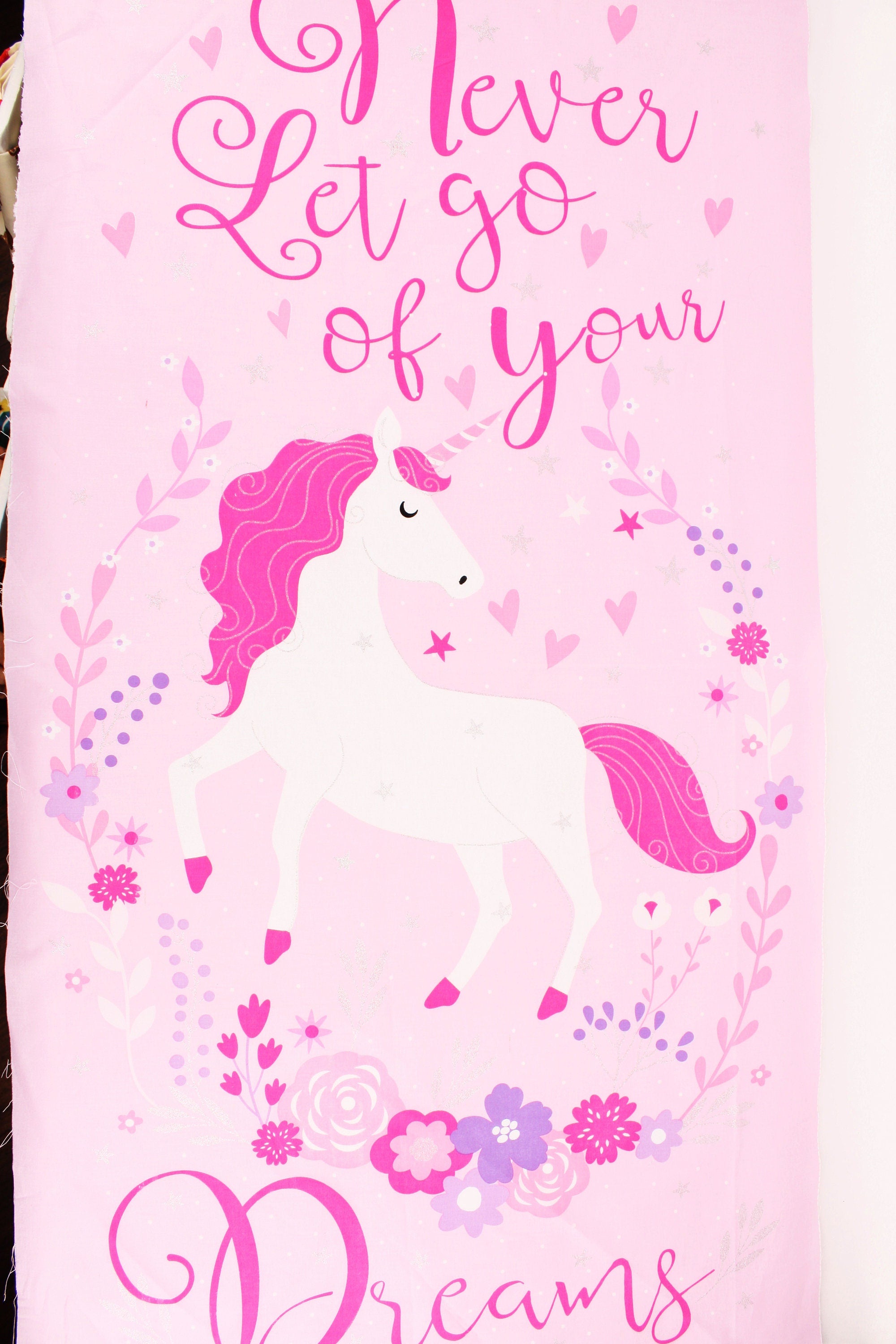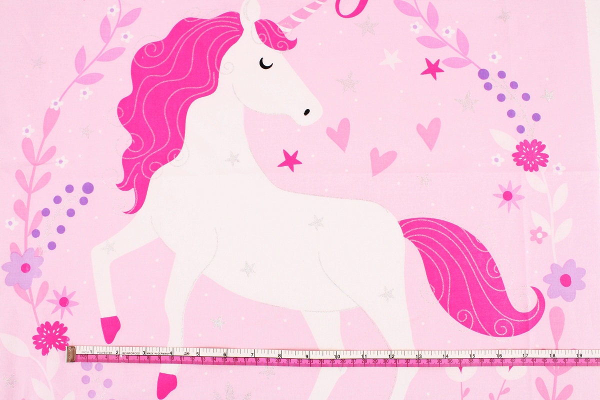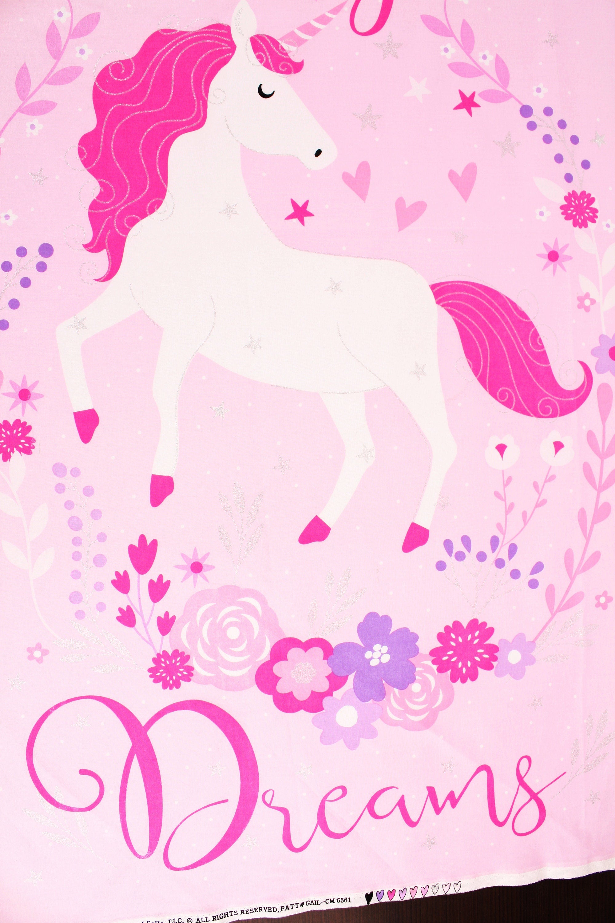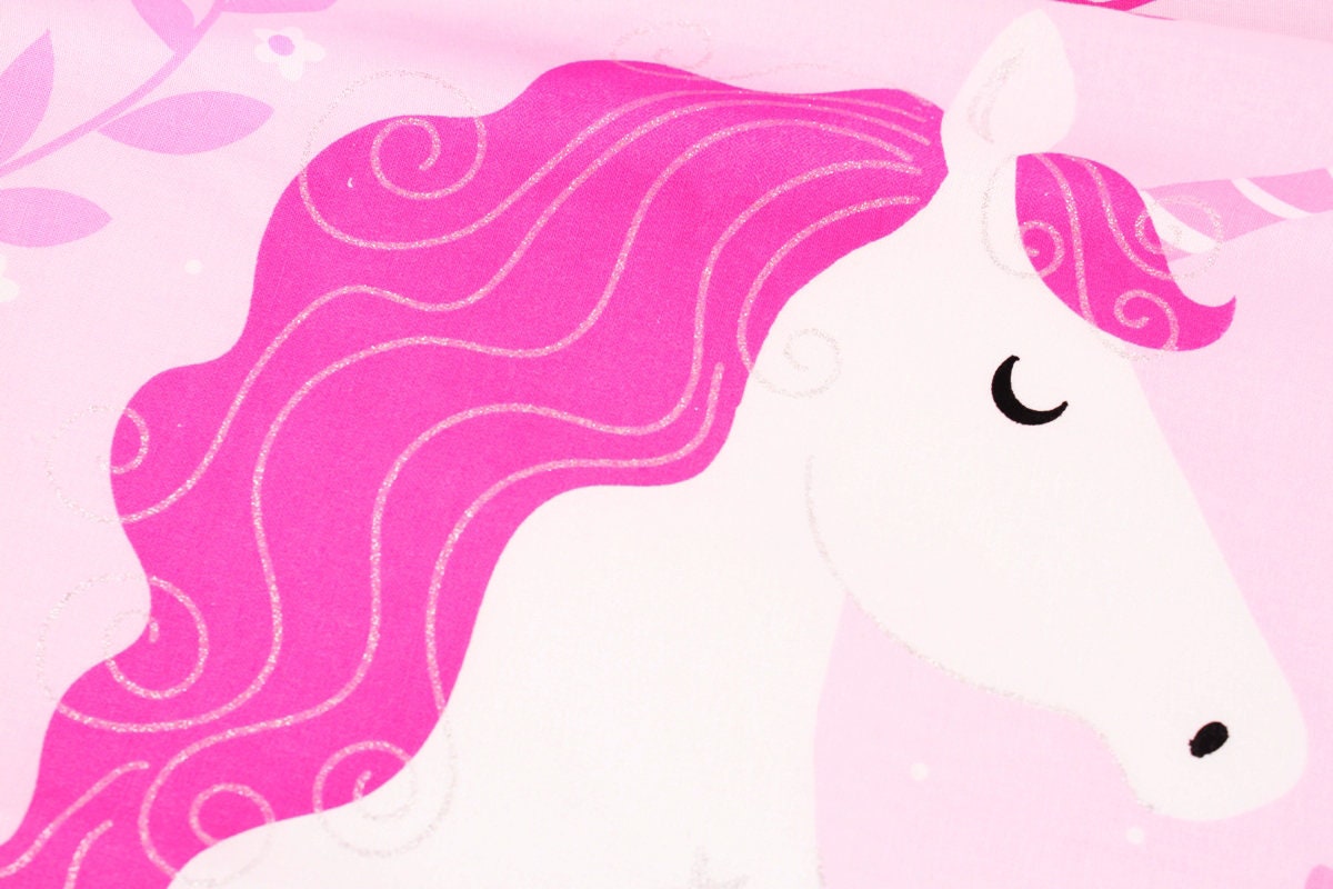 Timeless Treasures Fabrics のグリッター ユニコーン ピンク ファブリック